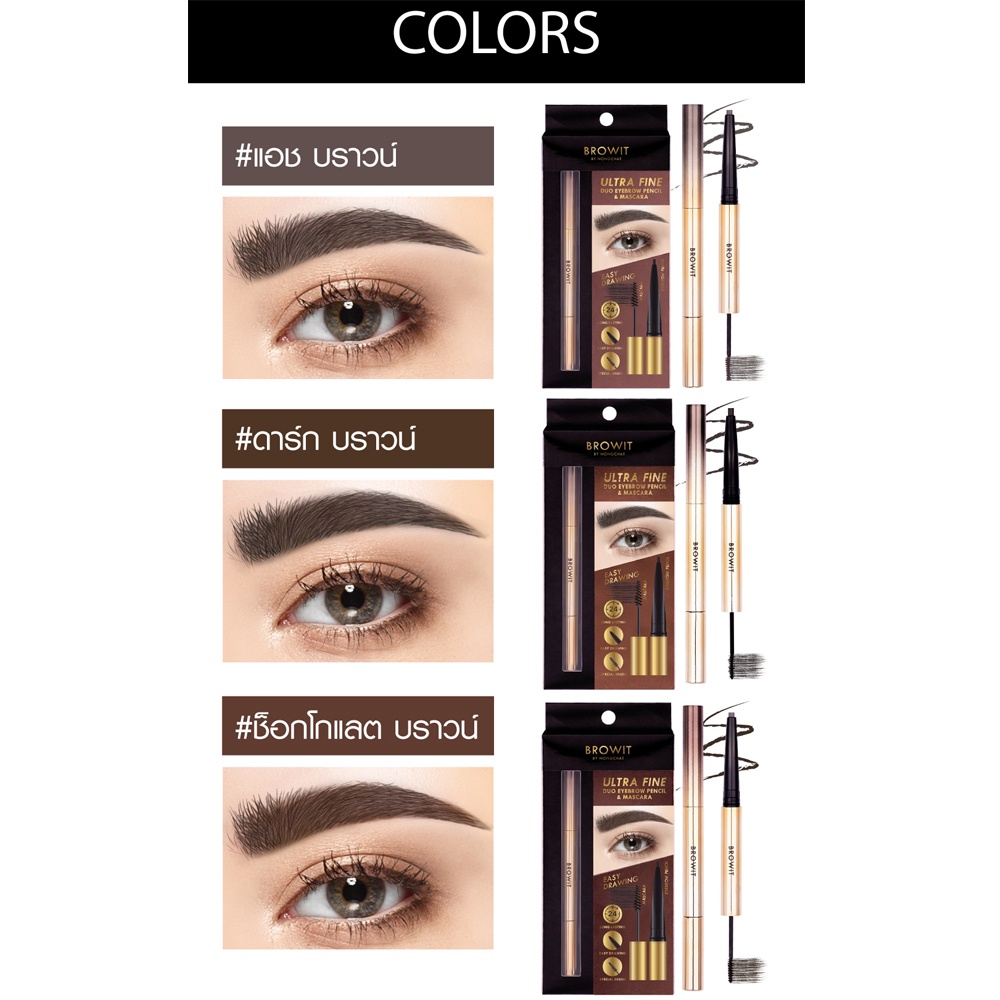Browit อัลตร้าไฟน์ดูโอ้อายบราวเพนซิลแอนด์มาสคาร่า 0.16g+1.26g วาดคิ้วสวย ล็อกคิ้วฟู บราวอิท