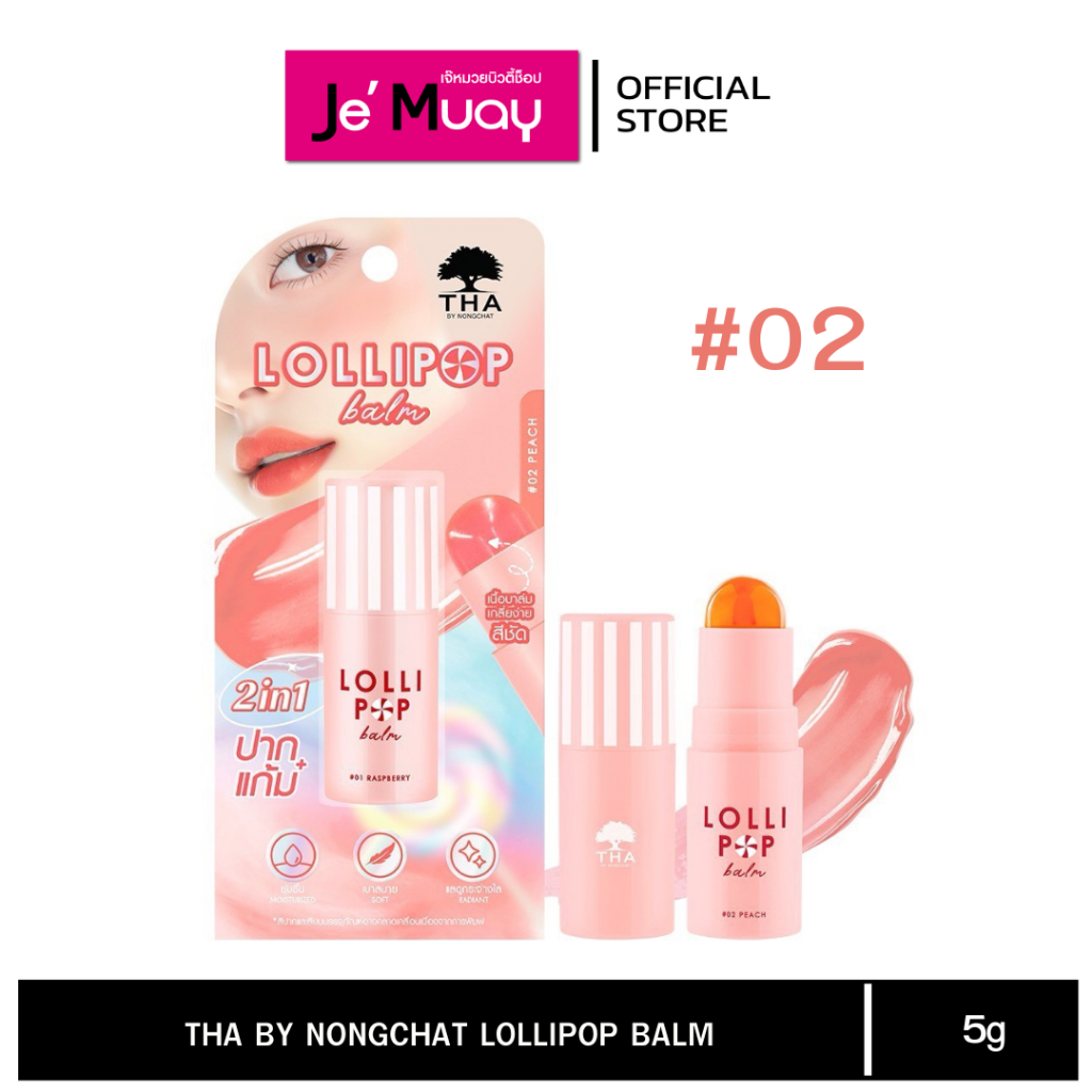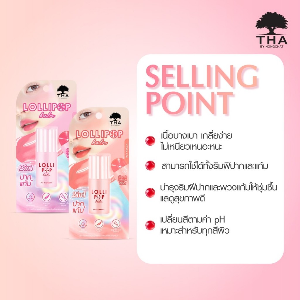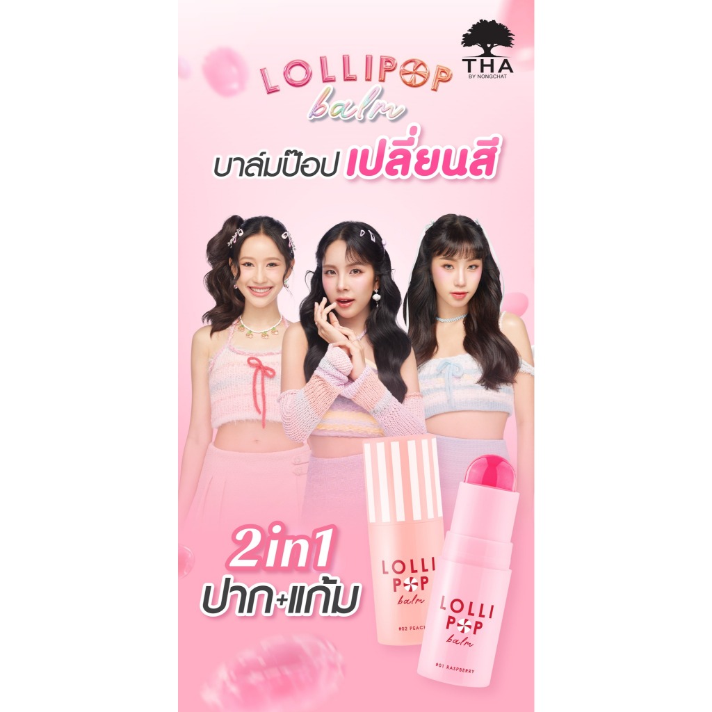 THA BY NONGCHAT โลลิป๊อปบาล์ม ฑาบาย น้องฉัตร เนื้อบาล์ม เกลี่ยง่าย สีชัด แก้ม + ปาก 5 g.