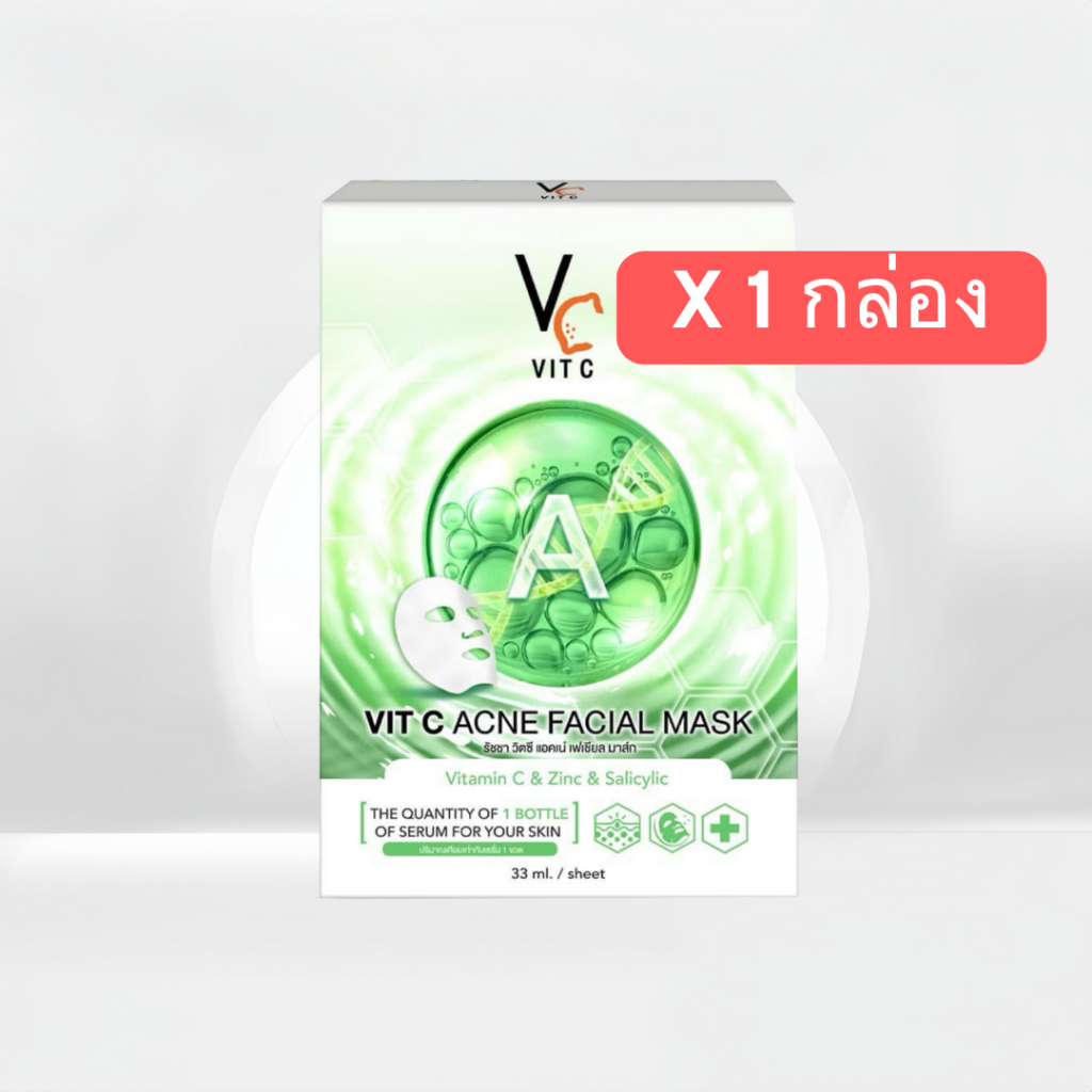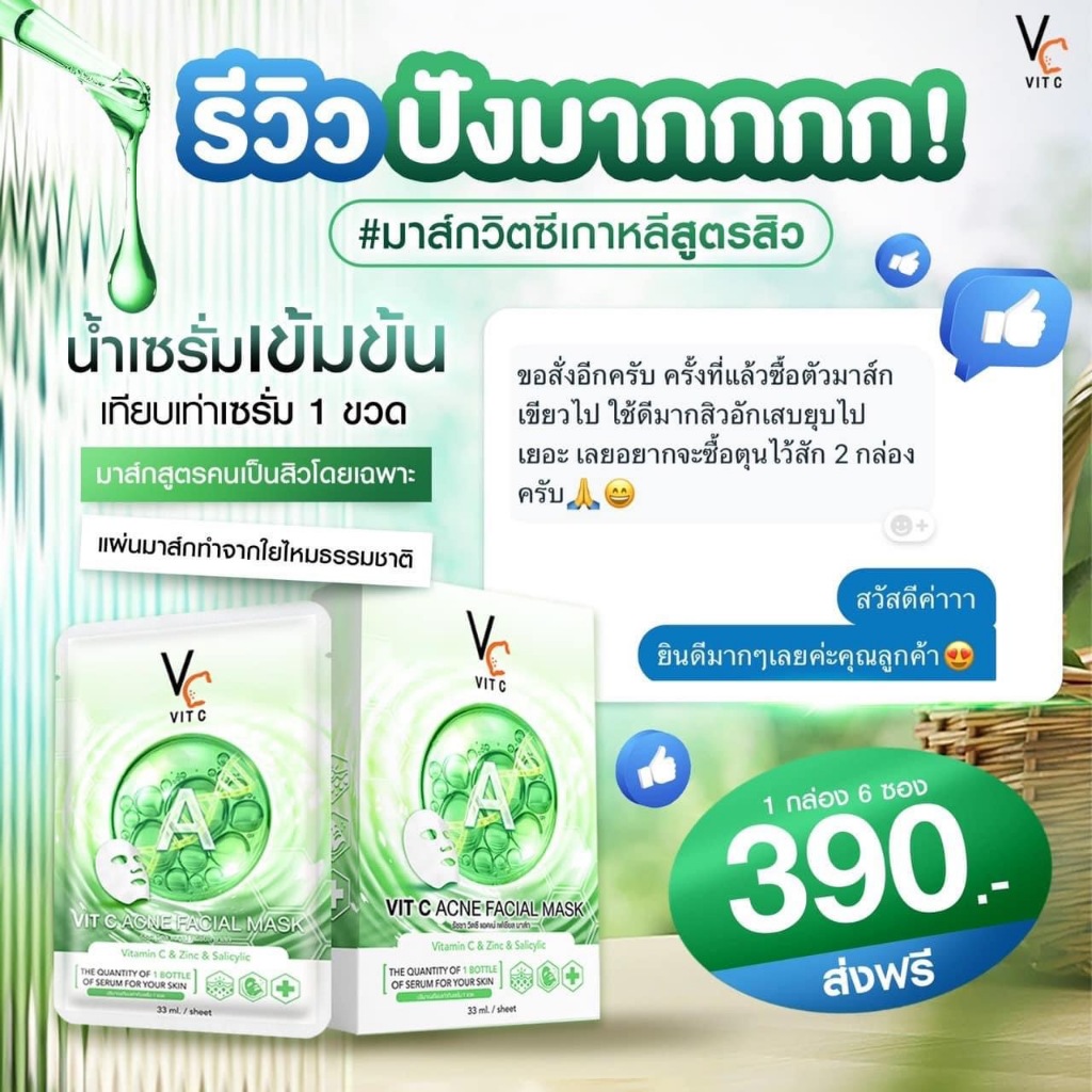 [ส่งด่วน] มาส์กวิตซีเกาหลีน้องฉัตรสูตรลดสิว สีเขียว VITC ACNE FACIAL MASK [จำหน ่ายยกกล่อง]