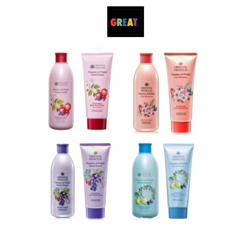 โลชั่น&เจลอาบน้ำสครับ Oriental Princess Passion of Polish Body Moisturiser&Shower Scrub โลชั่น&เจลอาบน้ำ 250 ml.
