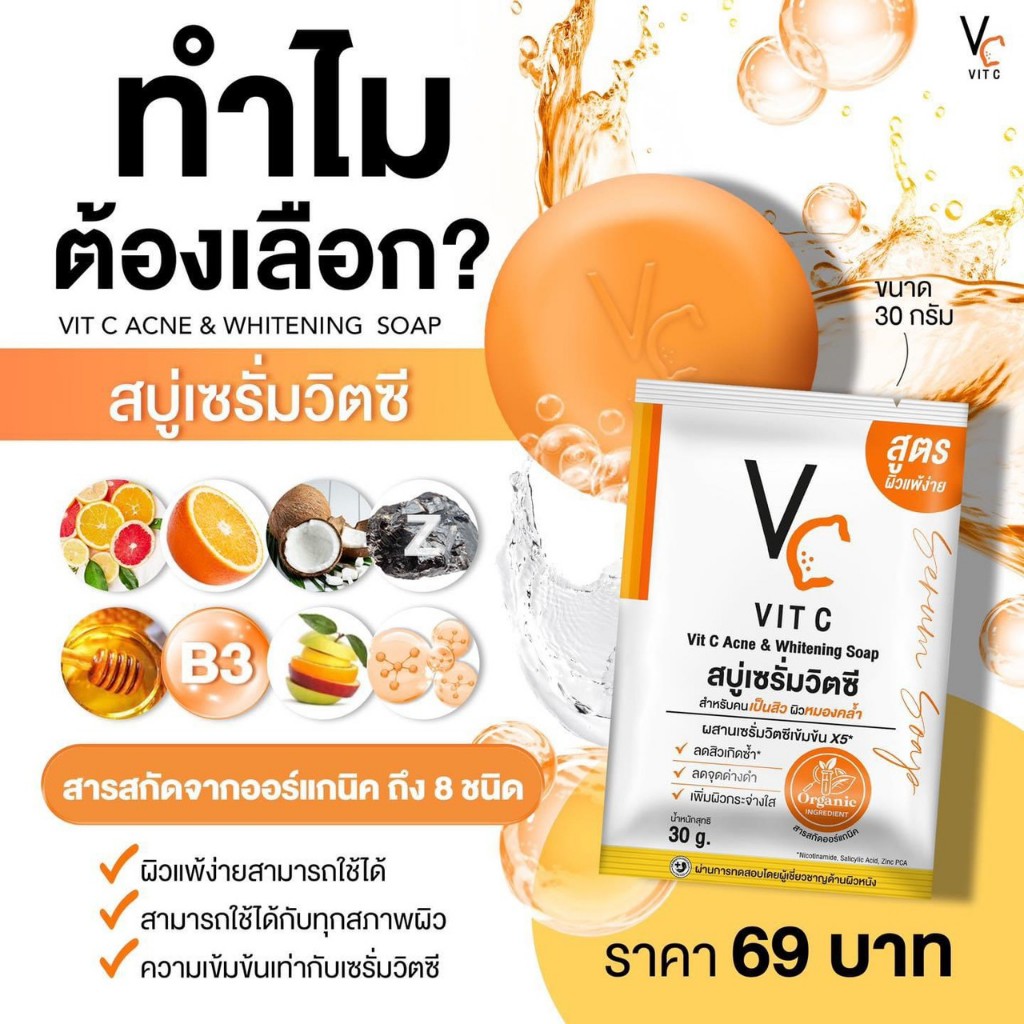 สบู่เซรั่มวิตซี สูตรผิวแพ้ง่าย VC Vit C Ance & Whitening Soap 30g
