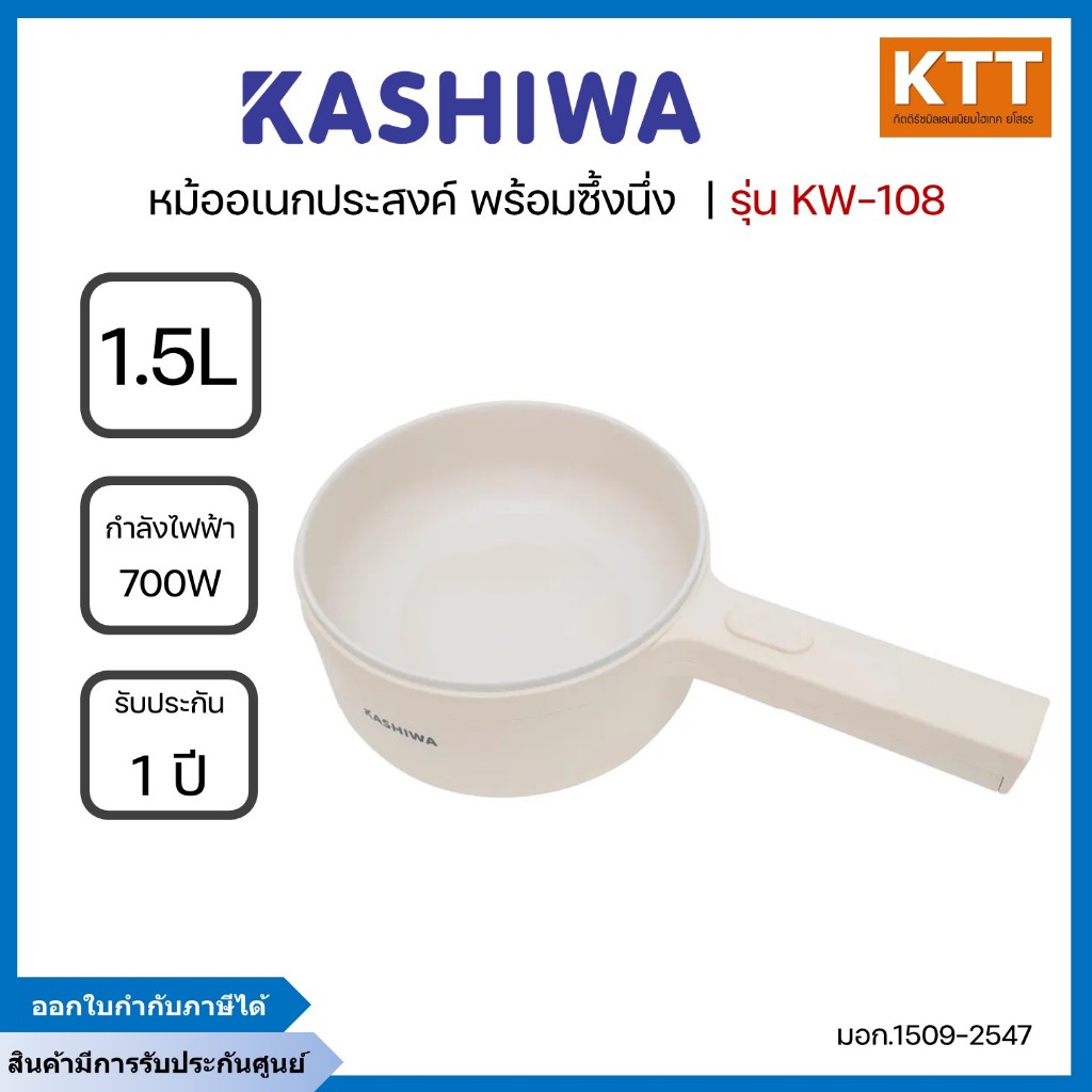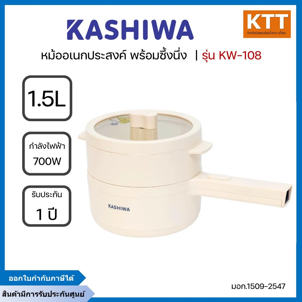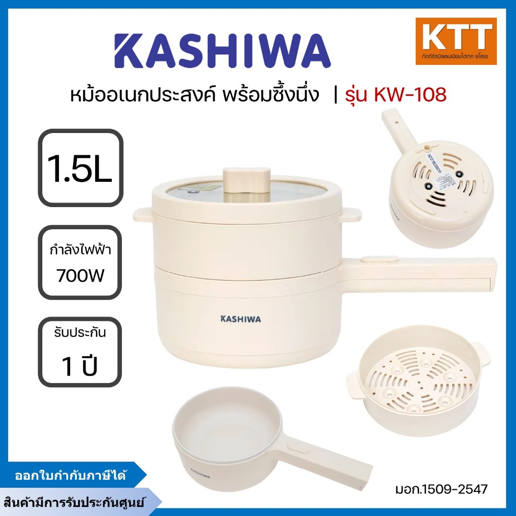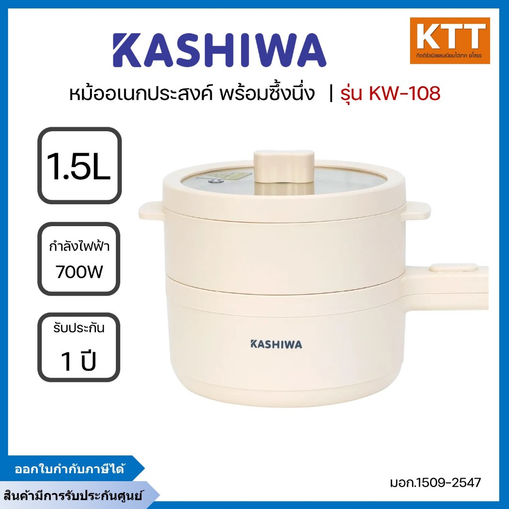 KASHIWA หม้อไฟฟ้าอเนกประสงค์พร้อมซึ้งนึ่ง 1.5 ลิตร 700 วัตต์ รุ่น KW-108 สีครีม