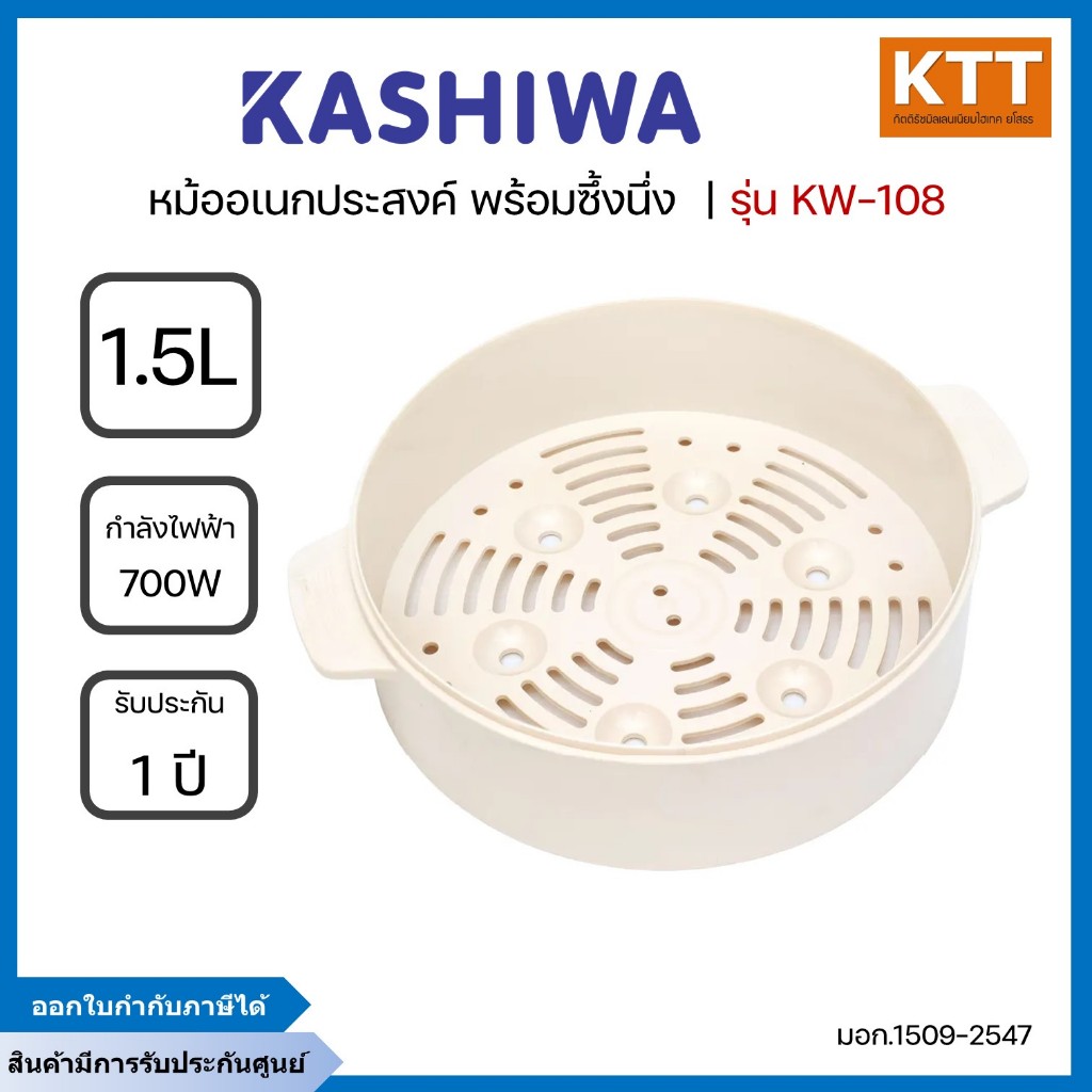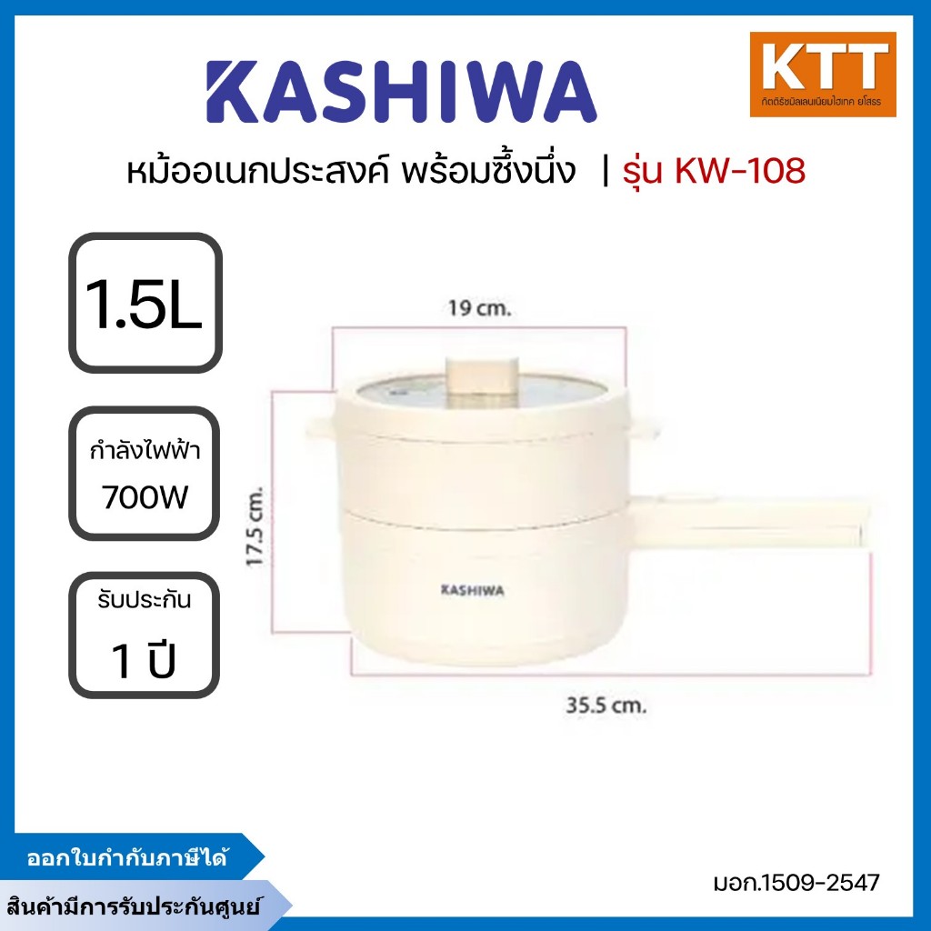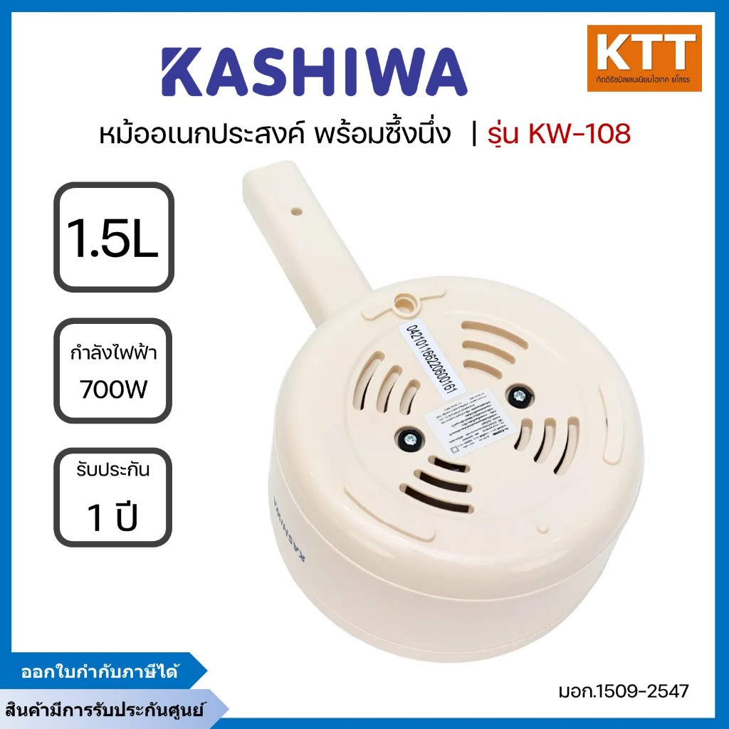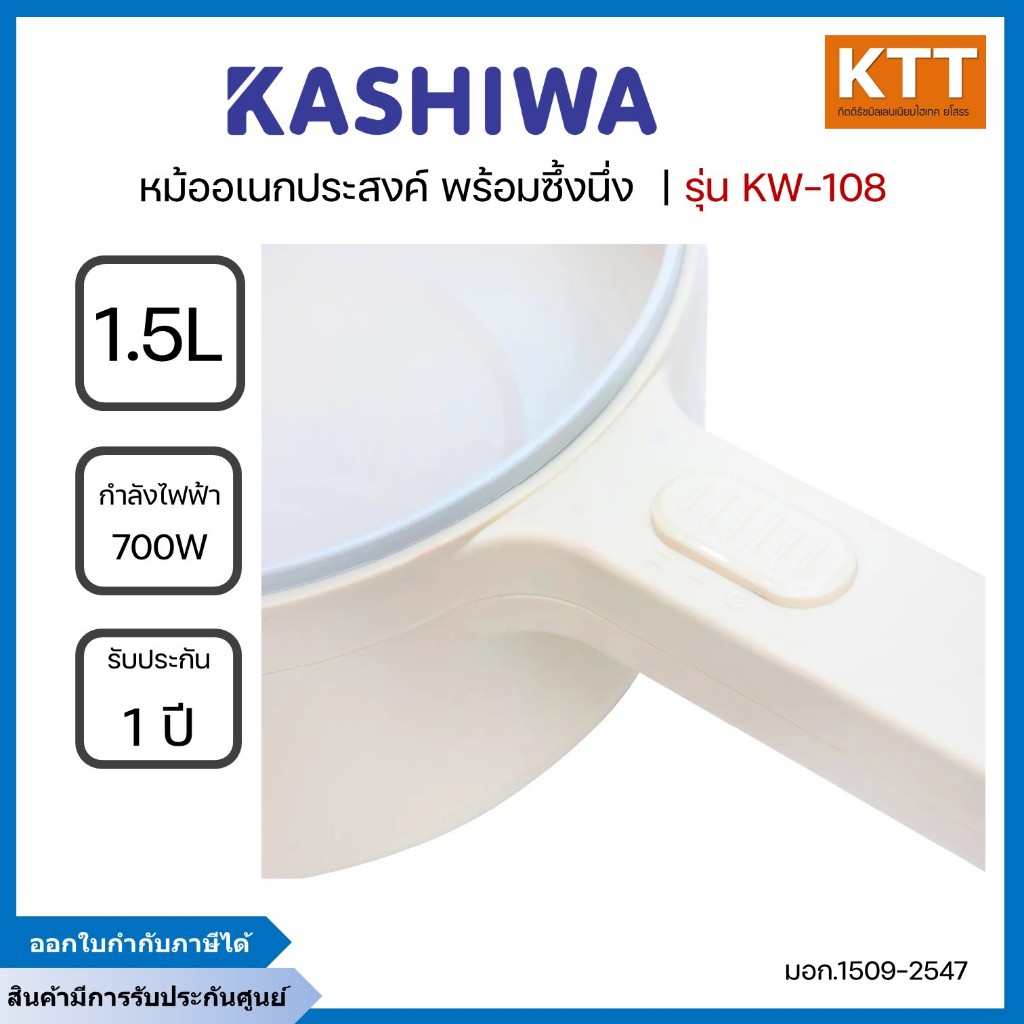 KASHIWA หม้อไฟฟ้าอเนกประสงค์พร้อมซึ้งนึ่ง 1.5 ลิตร 700 วัตต์ รุ่น KW-108 สีครีม