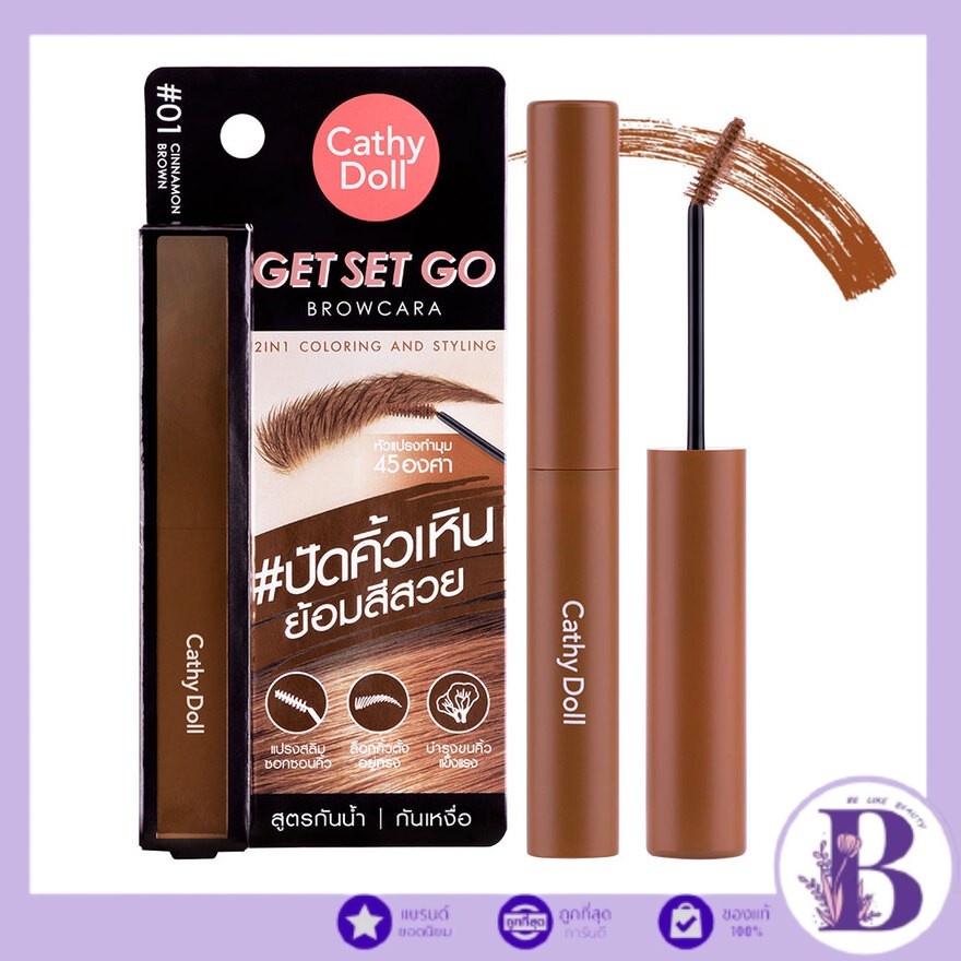 (1ชิ้น) Cathy Doll Get Set Go Browcara #ปัดคิ้วเหินย้อมสีสวย กันน้ำ กันเหงื่อ 3.2กรัม