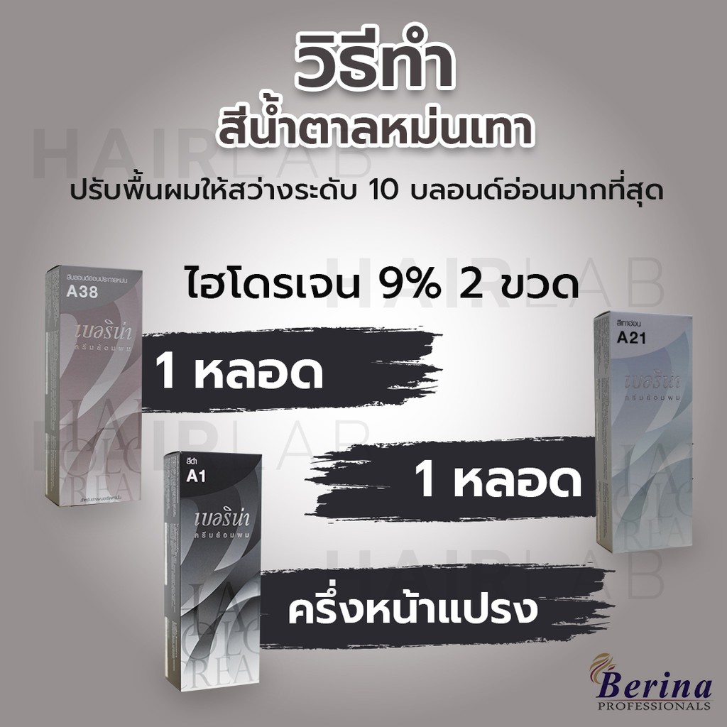 พร้อมส่ง เซตสีผมเบอริน่ า Berina hair color Set A1+A21+A38 สีน้ำตาลหม่นเทา สีผมเบอริน่า สีย้อมผม ครีมย้อมผม