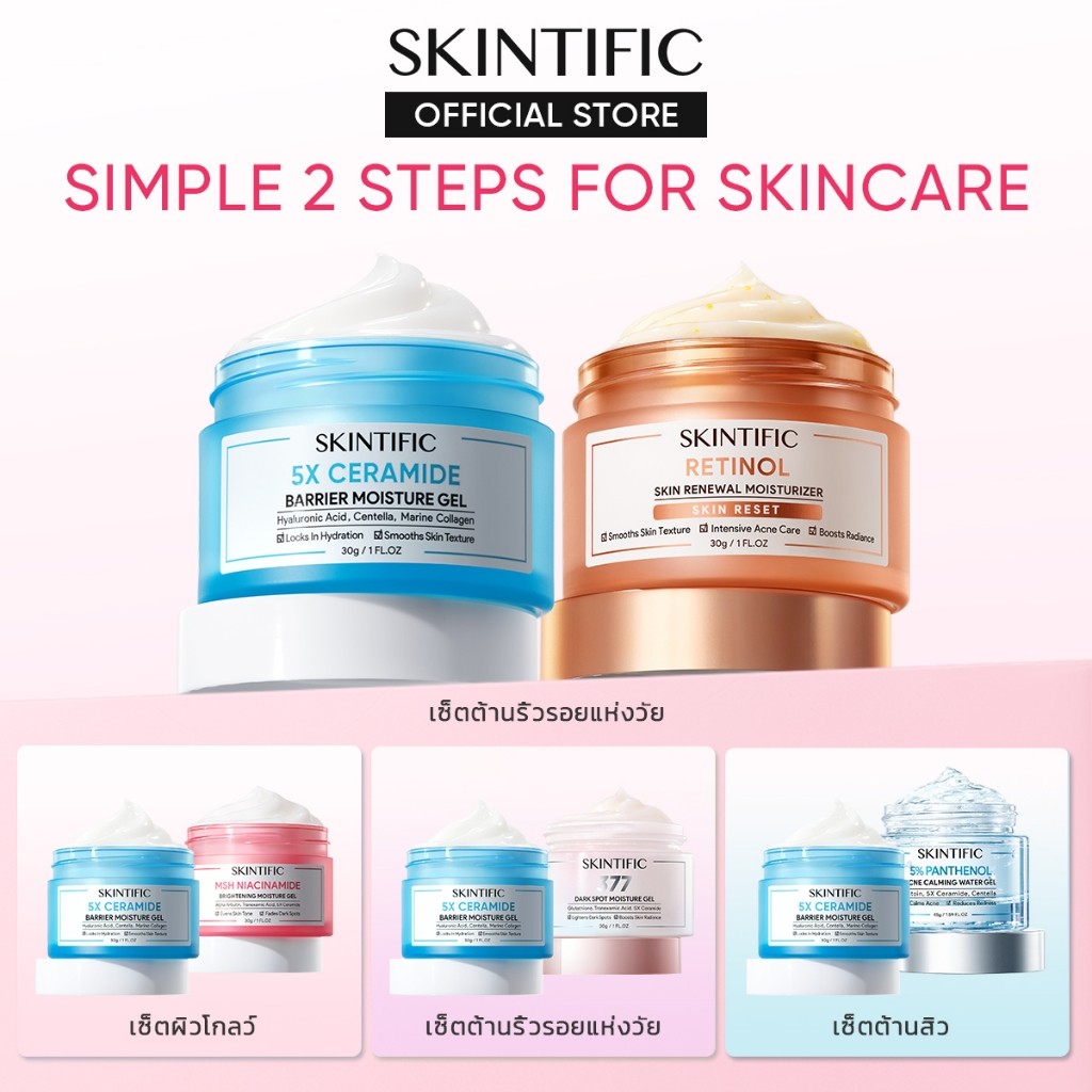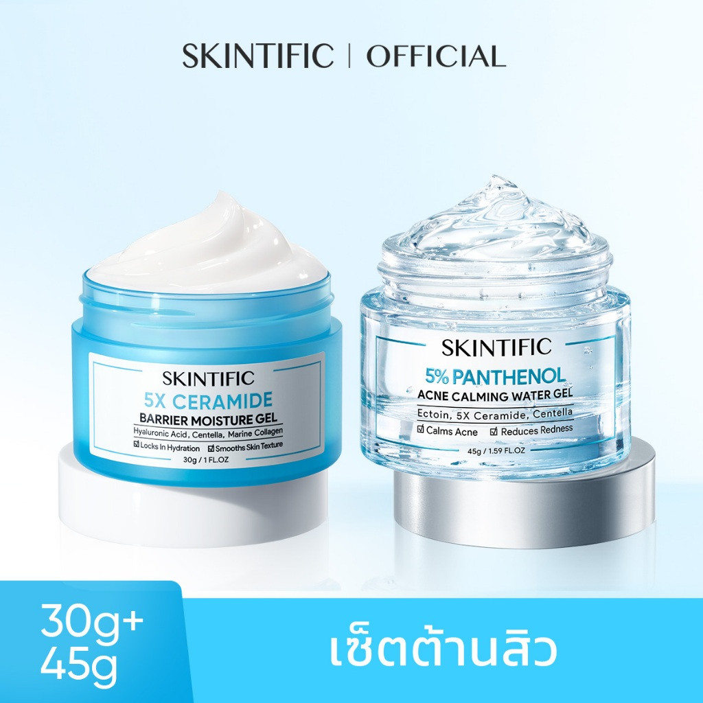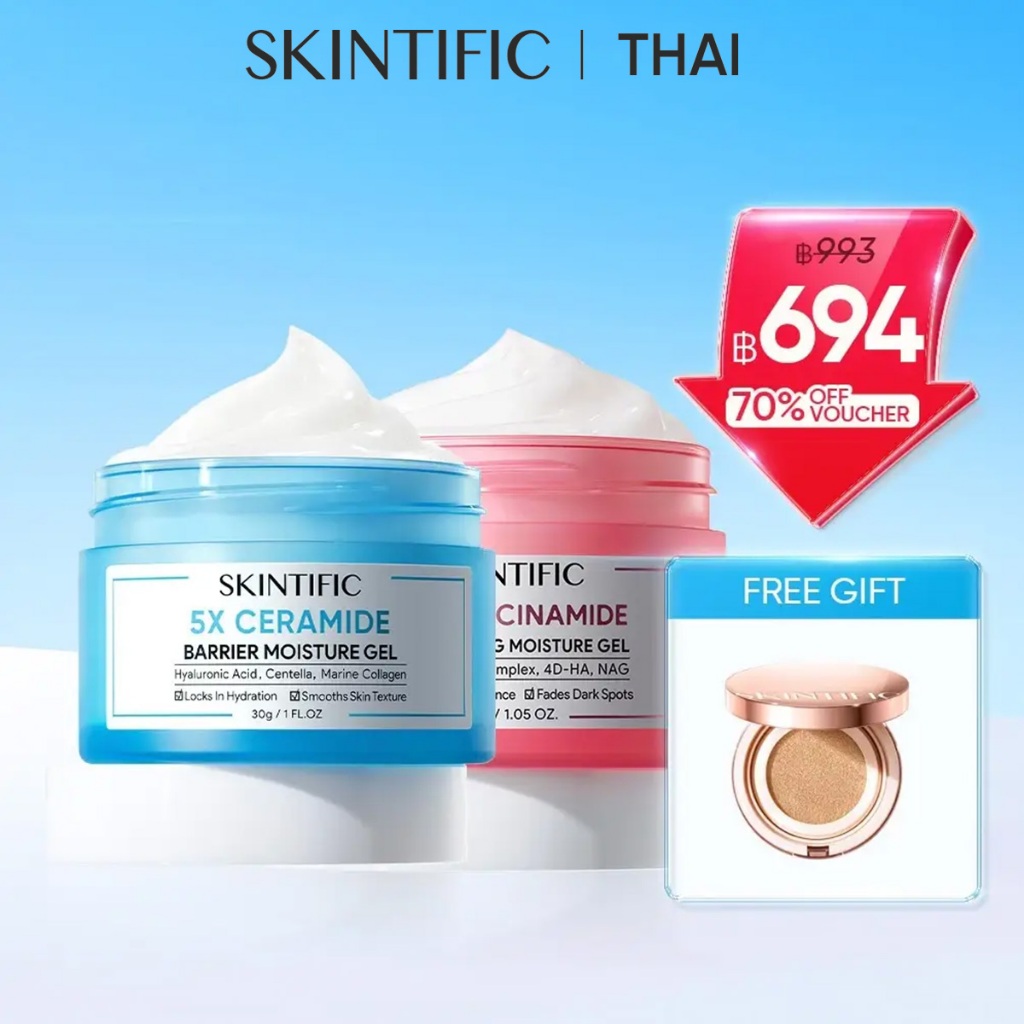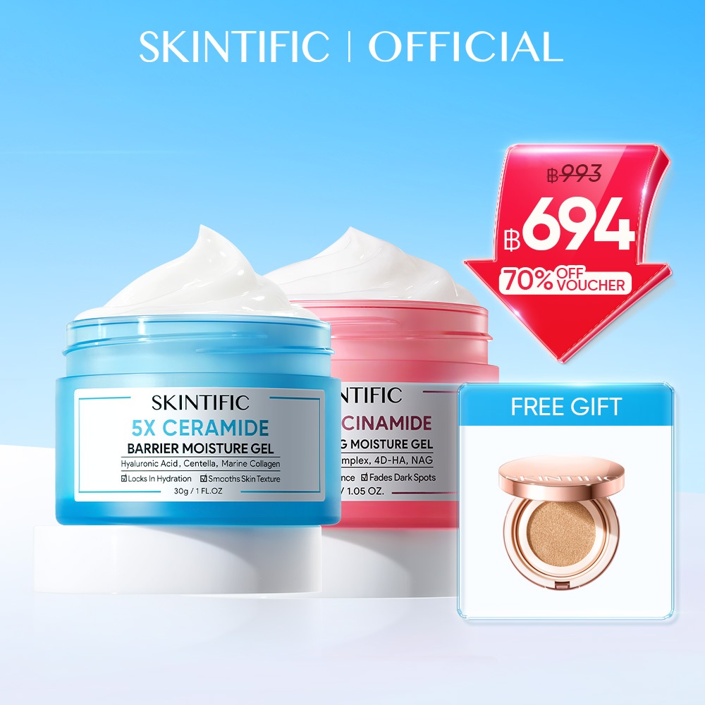 SKINTIFIC 2pcs 5X Ceramide แบร์ริเออร์ มอยส์เจอร์ เ จล ไบร์ทเทนนิ่ง มอยส์เจอร์ เจล ซิมไวท์ 377 ดาร์ก สปอต มอยซ์เจอร์ เจล