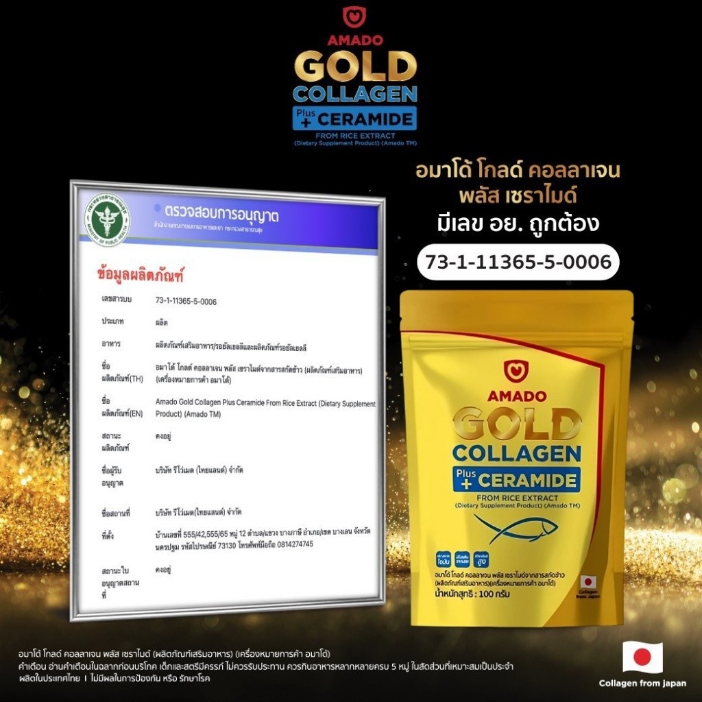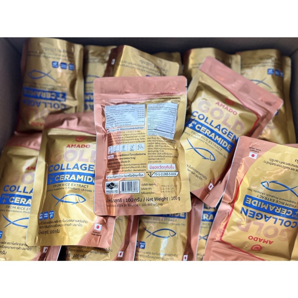 [Gold แบบซอง 100 กรัม] Amado Gold Collagen Ceramide อมาโด้ โกลด์ พลัส เซราไมด์ [100 กรัม] [3 ซอง] คอลลาเจนอมาโด้