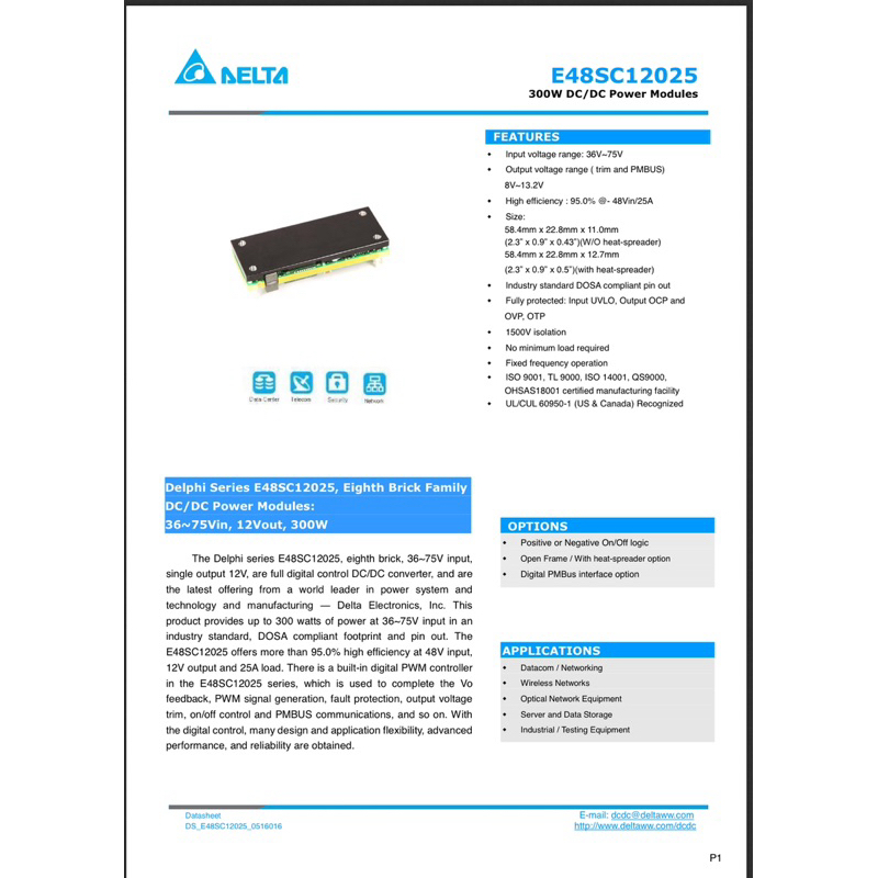 E48SC12025 300W DC/DC Power Modules INPUT:36-75V/10A OUTPUT:+12V/20A 25051501
