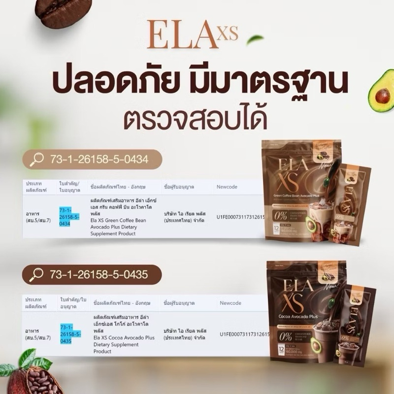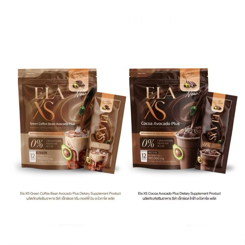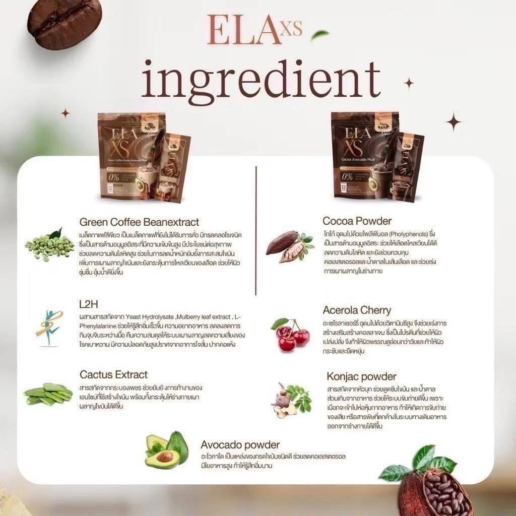 ELA XS อีล่าเอส กาแฟ & โกโก้ คุมหิว เร่งการเผาผลาญไขมัน ของนะนุ่น 1 ห่อมี 12 ซอง