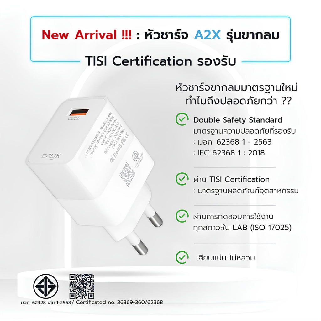 ENYX หัวชาร์จ A-2Xs ชาร์จเร็ว 20W Fast Charge 3.1A QC3.0 USB Charger สำหรับ Samsung Android ชาร์จไว