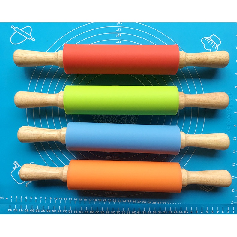 Eralife ไม้นวดแป้งซิลิโคน ด้ามจับไม้ หมุนได้ 360 องศา ใช้ได้สองด้าน