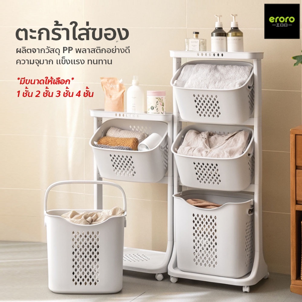 ERORO ตะกร้าใส่ผ้า มีล้อ เคลื่อนย้ายสะดวก หมุนได้ 360 องศา