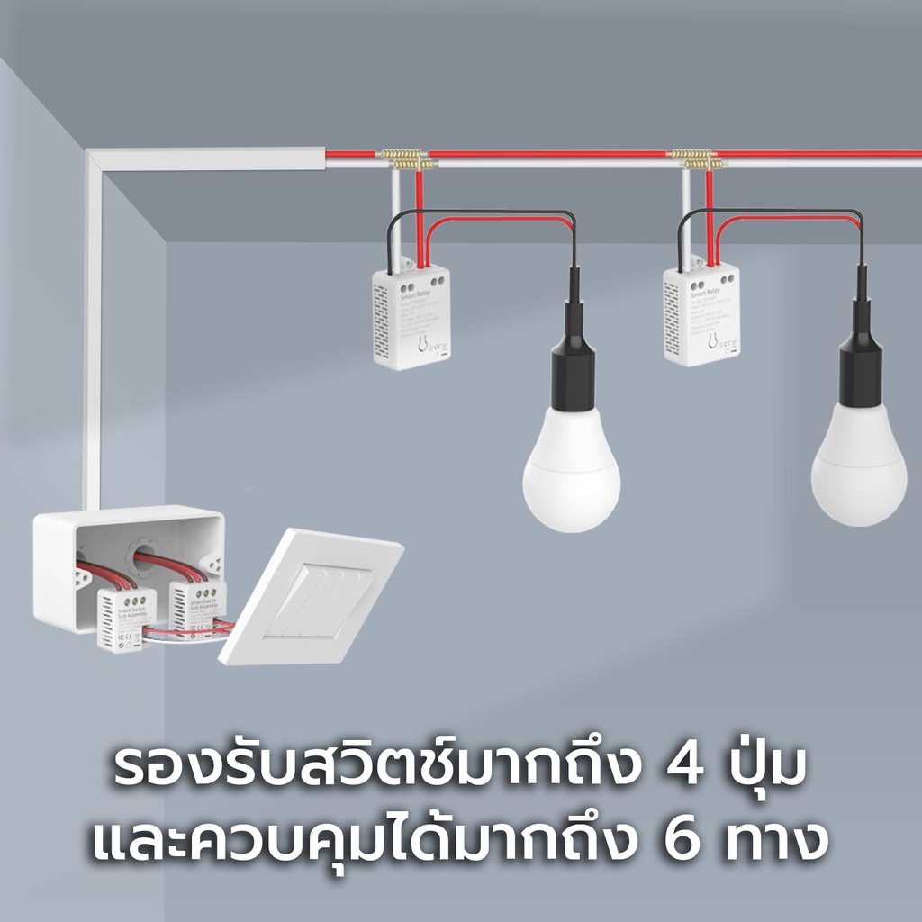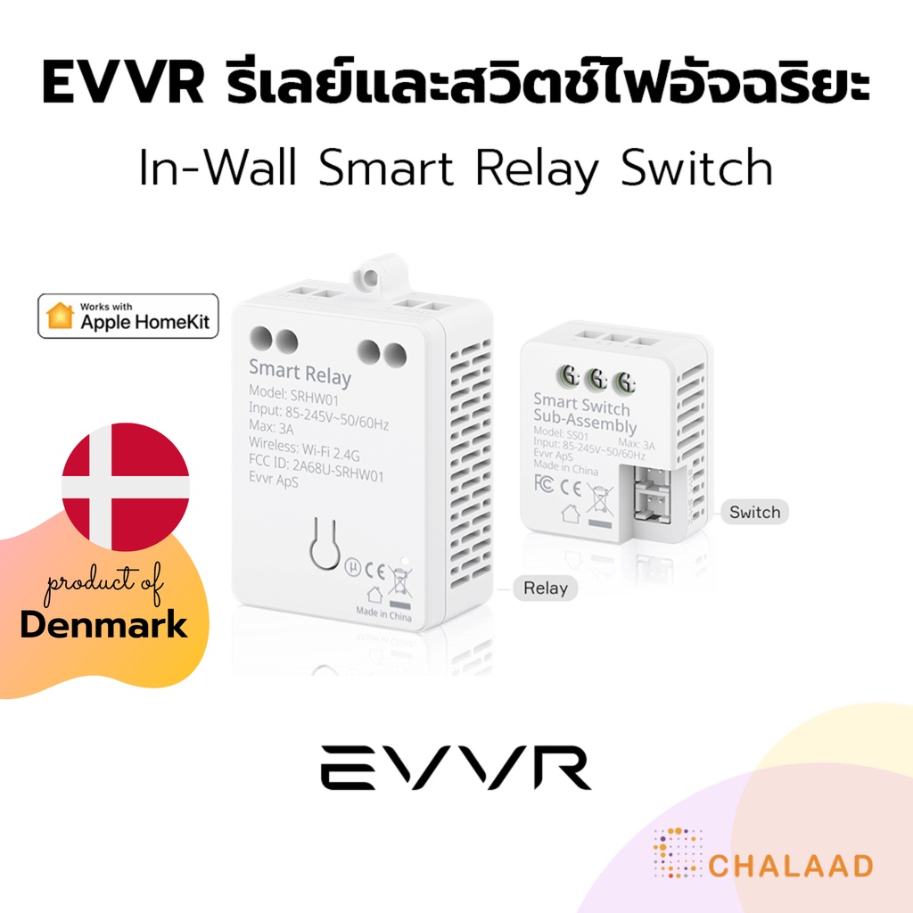 EVVR ชุดรีเลย์และสวิตช์ไฟอัจฉริยะเอฟเวอร์ สวิตช์ไฟไวไฟ สวิตช์ไฟ 2 ทาง สั่งผ่านแอป สั่งงานด้วยเสียง รองรับ Apple HomeKit