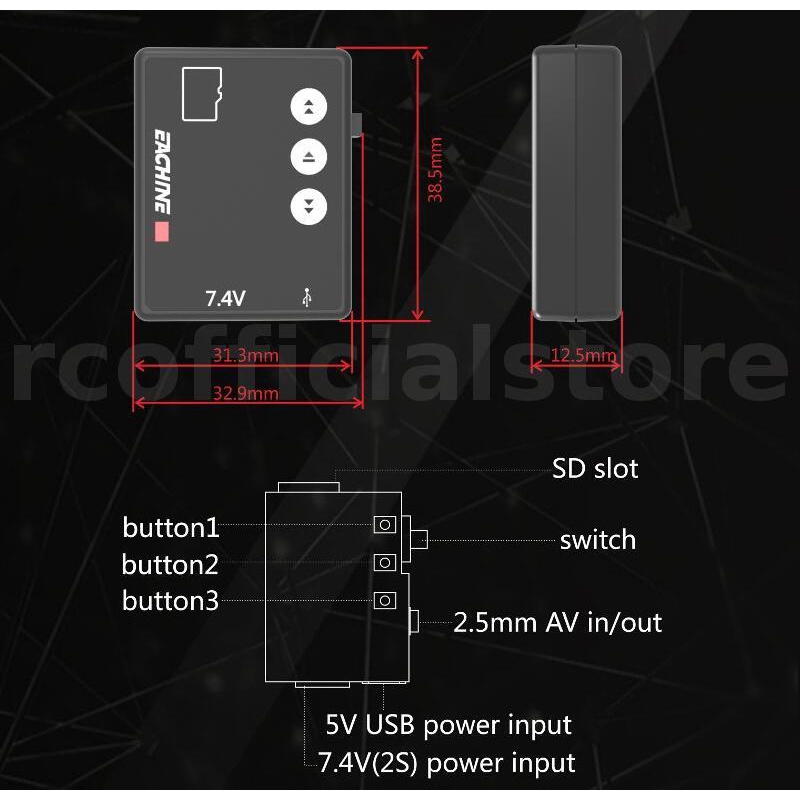 Eachine EV100 Micro AV Recorder 1280*480 Mini DVR Module Support 32G TF For FPV Goggles Monitor Camera Receiver Drone