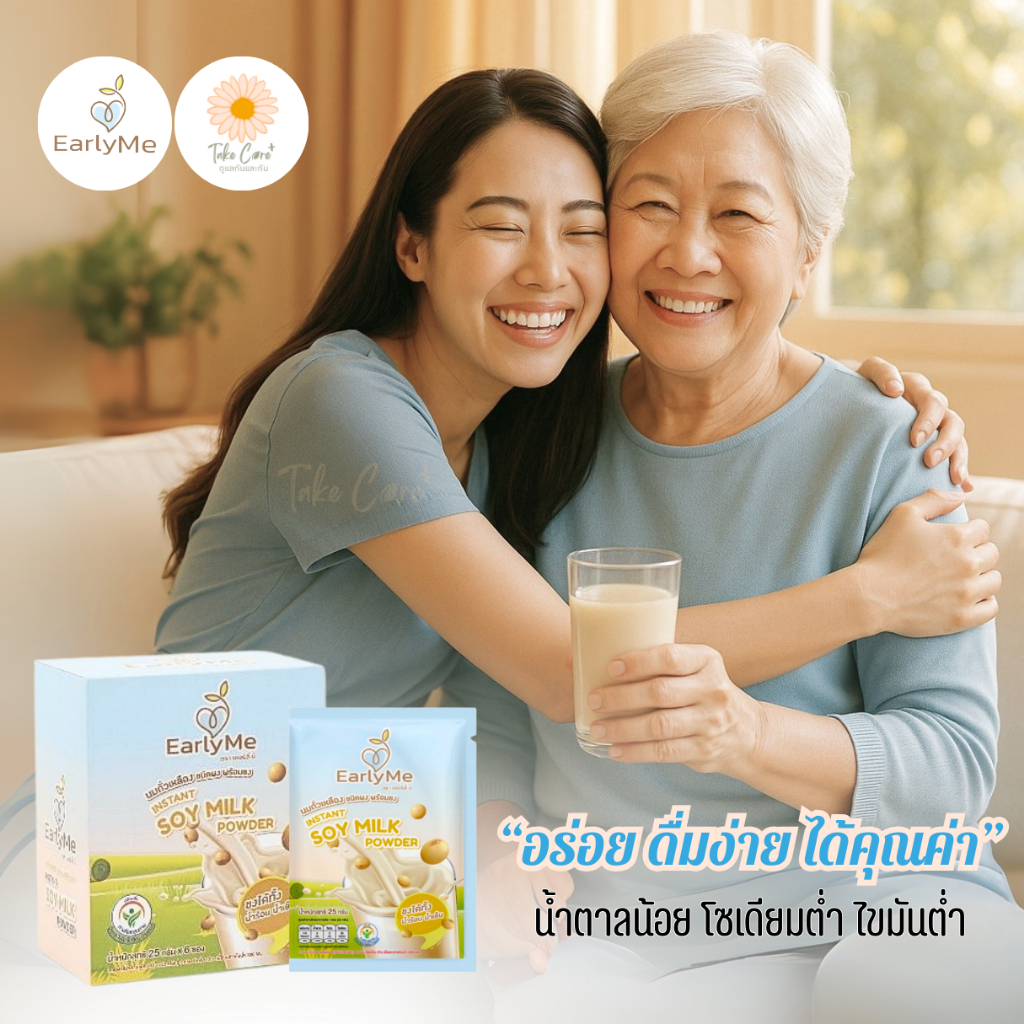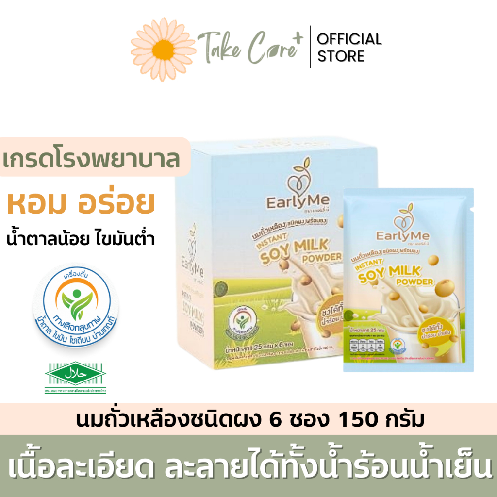 Early Me นมถั่วเหลือง 100% ชนิดผง น้ำตาลน้อย 6 ซอง 150 g. โซเดียมต่ำ อาหารผู้ป่วยเบาหวาน น้ำเต้าหู้