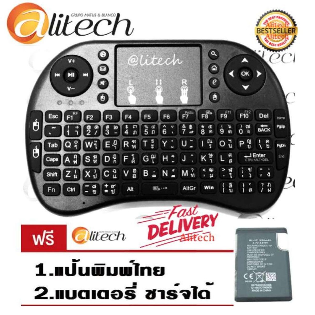 Eco Mini Wireless Keyboard + Touchpad + Battery Charge ได้ + แป้นพิมพ์ไทย (สีดำ)
