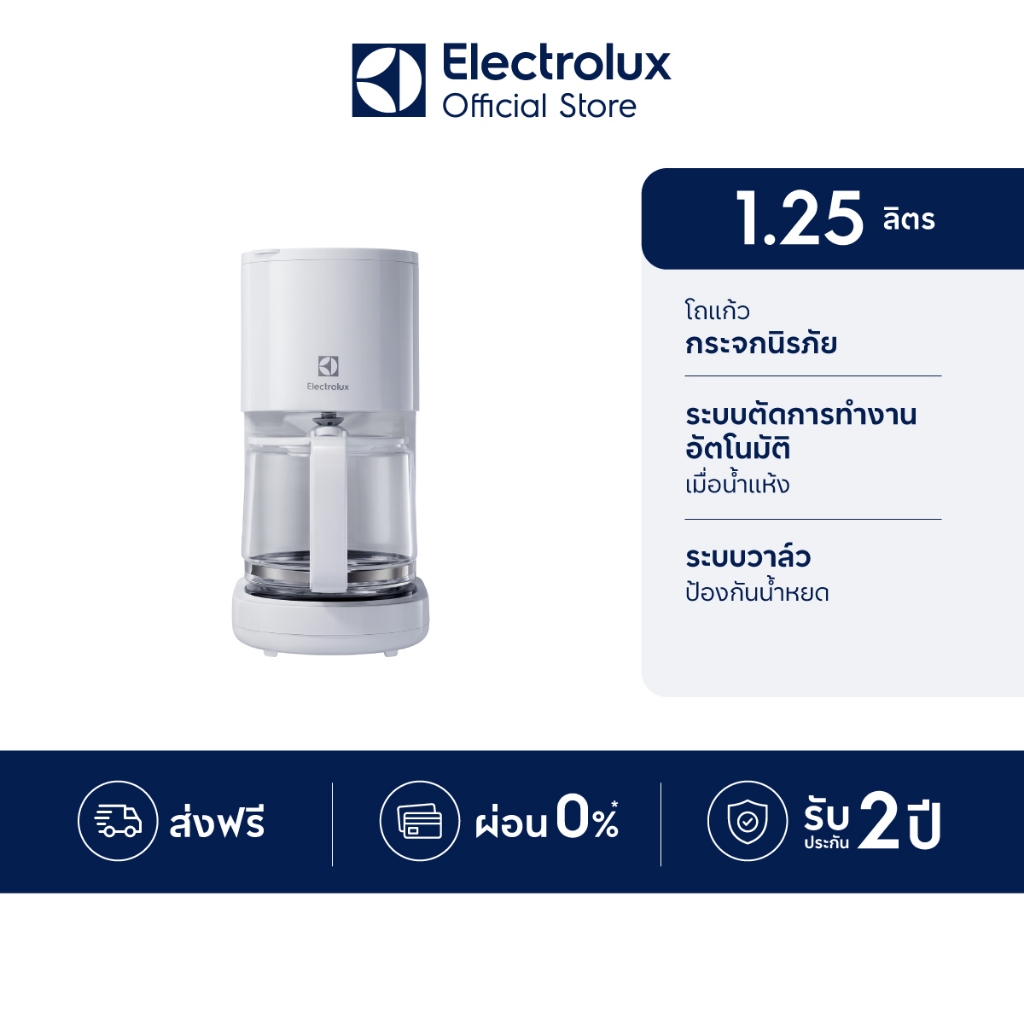 Electrolux เครื่องชงกาแฟแบบดริป ความจุ 1.25 ลิตร UltimateTaste 300 รุ่น E2CM1-200W สีขาว