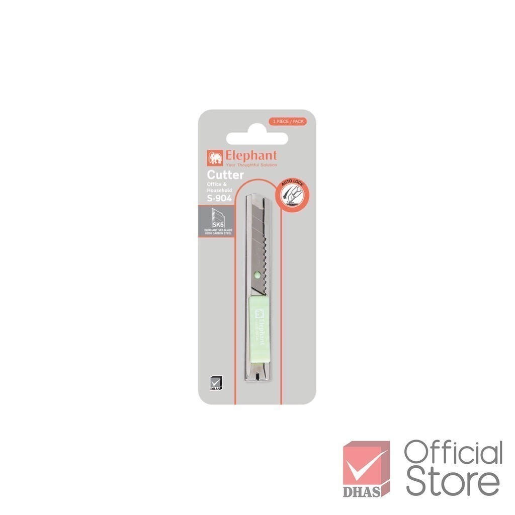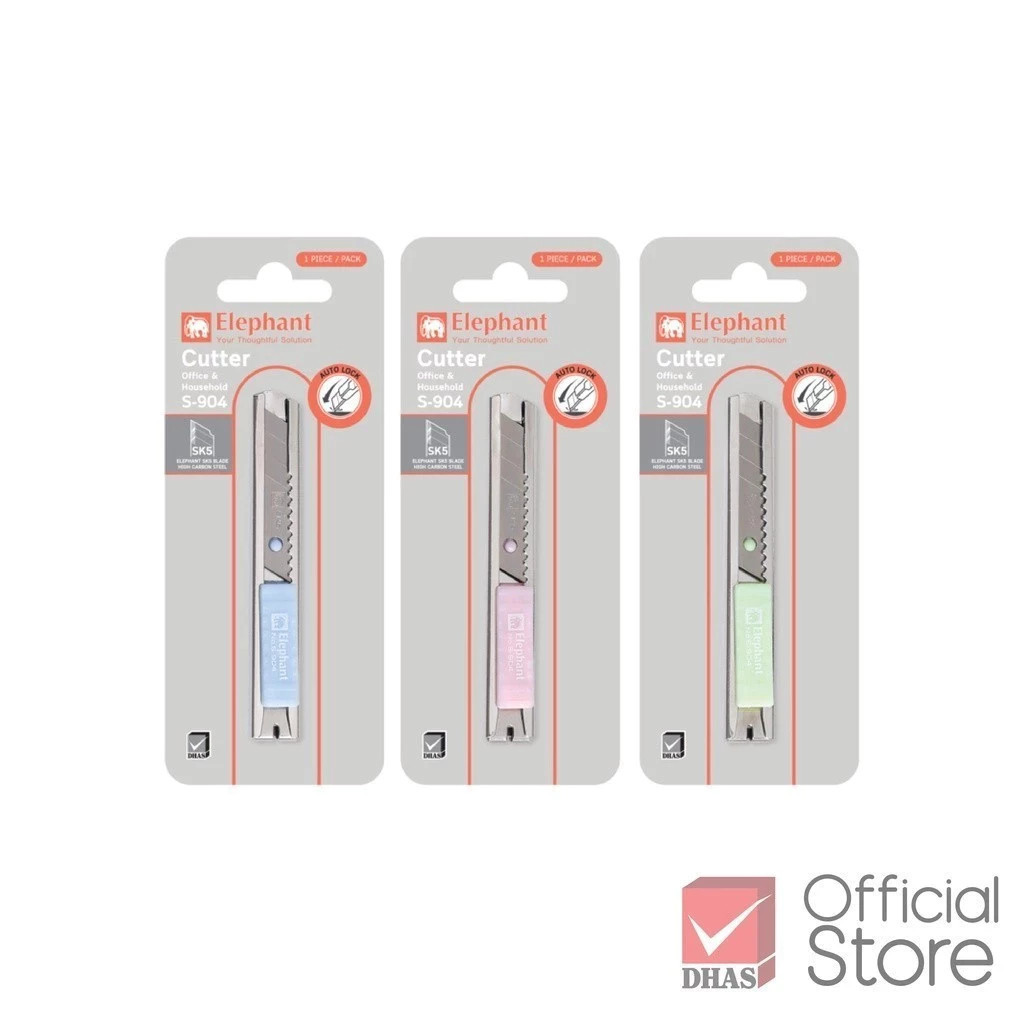 Elephant คัตเตอร์ มีดคัตเตอร์ ขนาดพกพา รุ่น S-904 9 มม. ใบมีด SK5 คละสี จำนวน 1 อัน