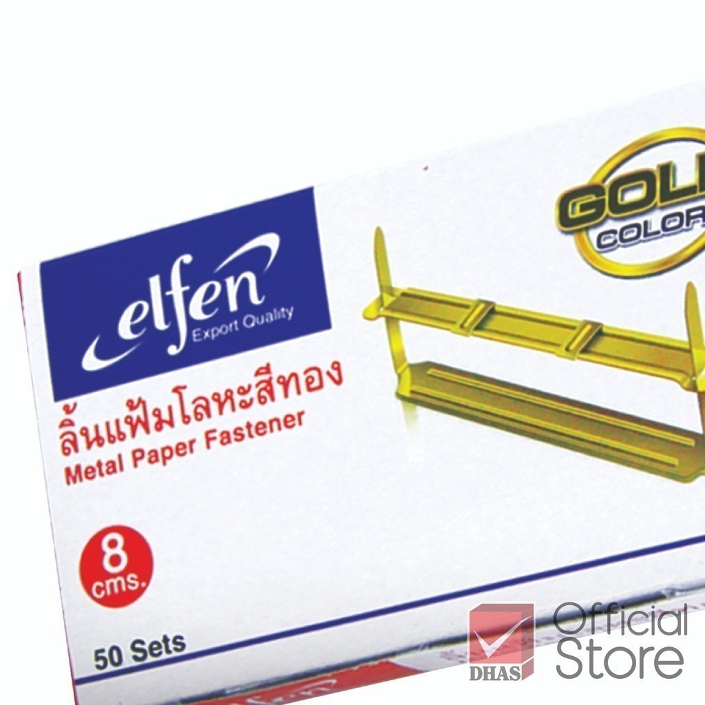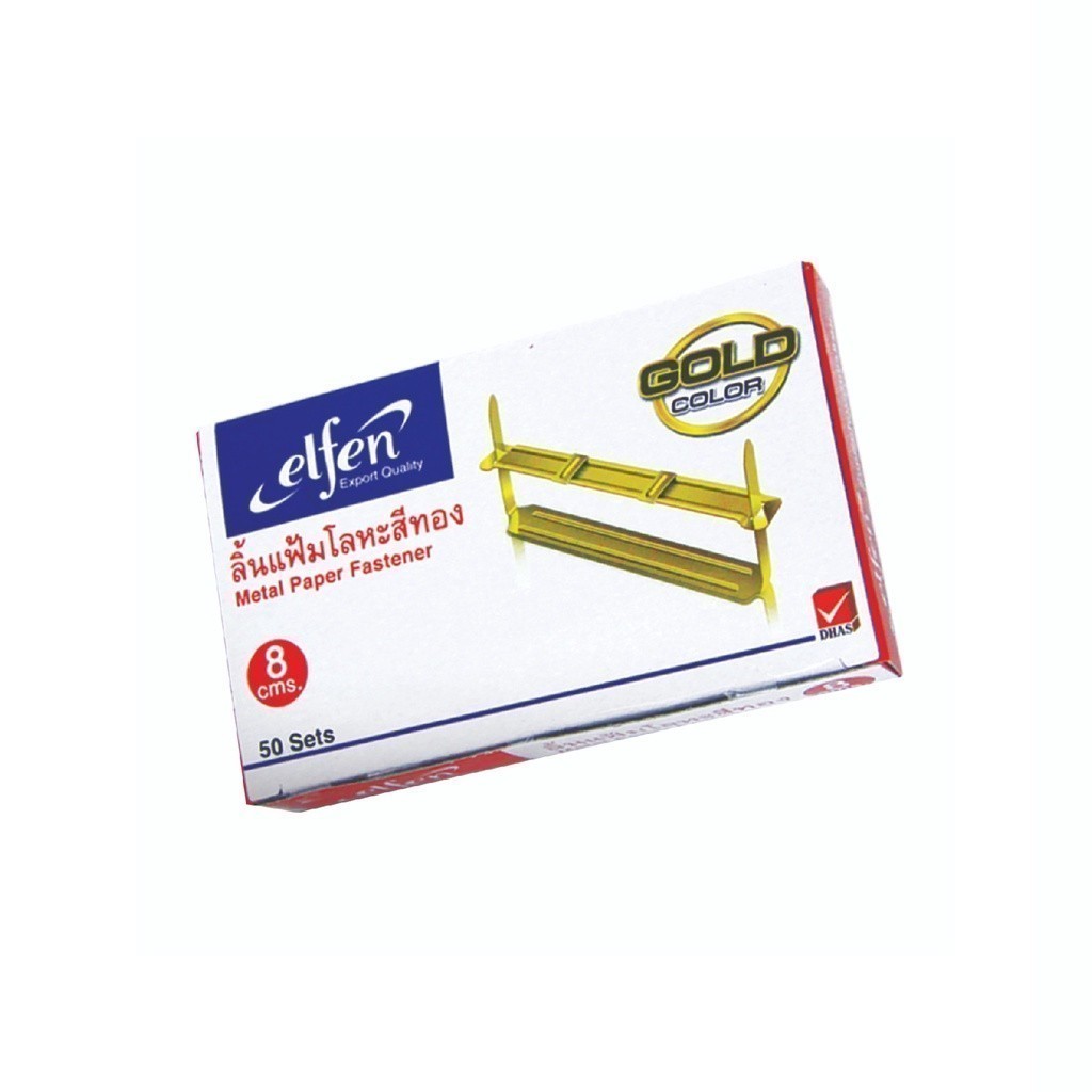 Elfen ลิ้นแฟ้ม ลิ้นแฟ้มโลหะสีทอง No.01 บรรจุ 50 เซ็ต จำนวน 1 กล่อง