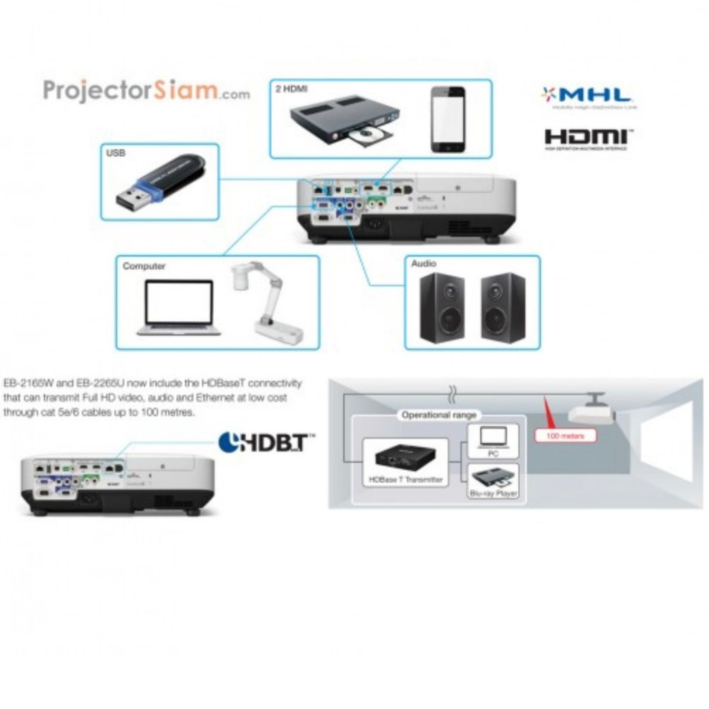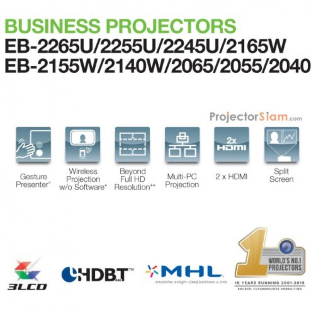 Epson EB-2265U Projector ความสว่างสูง 5500 Ansi Lumens WUXGA 1920x1200 pixels สามารถเปิดฉายจอขนาด 200 นิ้ว ได้ชัดเจนสดใส