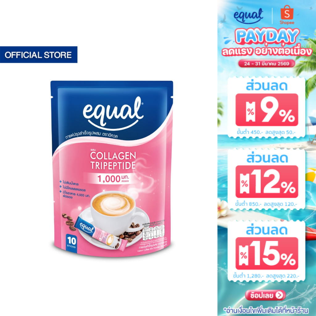 Equal collagen coffee อิควล กาแฟคอลลาเจน ขนาด 10 ซอง 70 แคลอรี