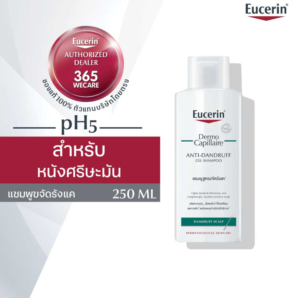 Eucerin DermoCapillaire ANTI-DANDRUFF GEL SHAMPOO 250 ML ยูเซอริน แชมพูขจัดรังแค บำรุงเส้นผม ลดผมขาดร่วง 365wecare