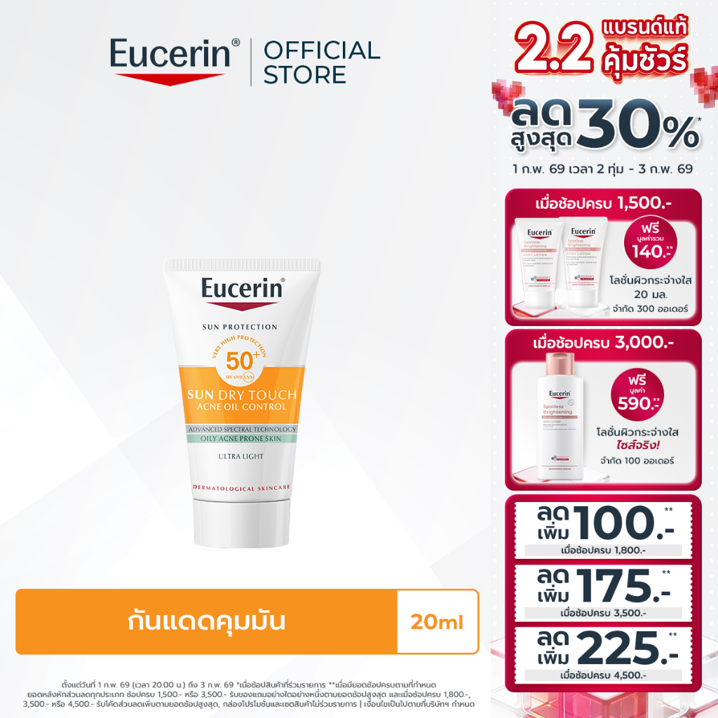 Eucerin SUN DRY TOUCH ACNE OIL CONTROL SPF50+ PA++++ 20 ML ยูเซอริน กันแดดคุมมัน เนื้อบางเบา สำหรับผิวหน้า