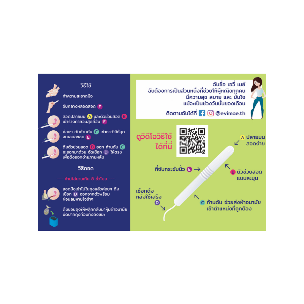 Evi Mae เอวี่ เมย์ ผ้าอนามัยแบบสอด ออร์แกนิค Organic Cotton Tampons (18 Pcs/Box)
