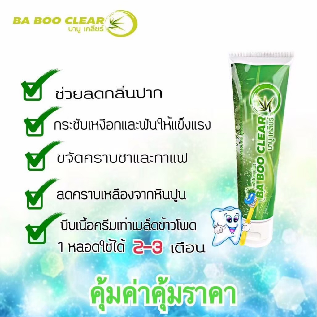 Ba Boo Clear ยาสีฟันบาบูเคลียร์ ช่วยทำให้ฟันขาว บรรเทาอาการเหงือกอักเสบ 5หลอด แถมไหมขัดฟัน25ชิ้น