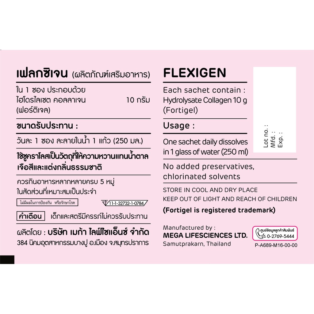 Mega We Care Flexigen 15x10 g. - คอลลาเจนชงดื่ม 1 กล่อง บรรจุ 15 ซอง
