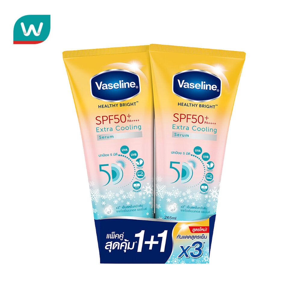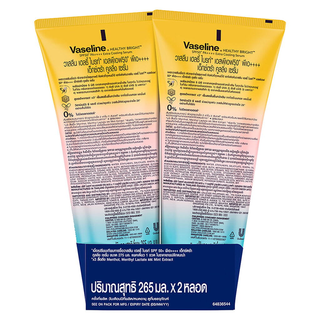 Vaseline วาสลีน เฮลธี้ ไบรท์ เอ็กซ์ตร้า คูลลิ่ง เซรั่ม เอสพีเอฟ50+ พีเอ++++ 265 มล.แพ็คคู่
