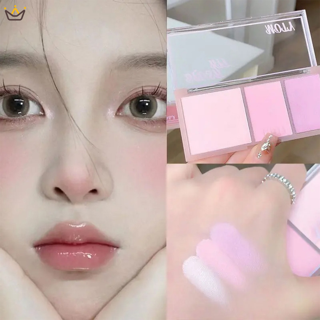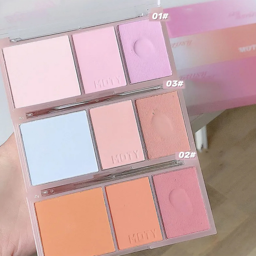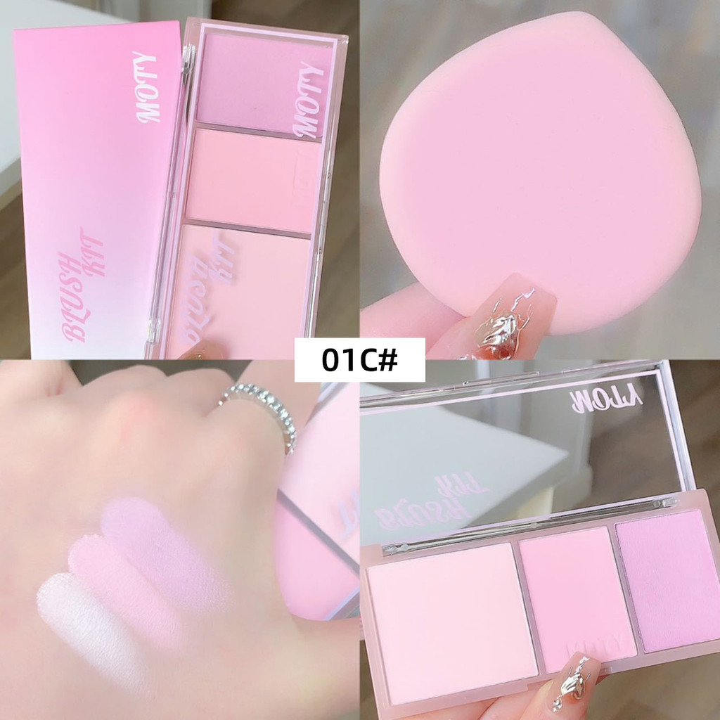 บลัชออนพาเลท 3 สี เพิ่มความกระจ่างใส ติดทนนาน ทาง่าย ปัดแก้ม แป้งปัดแก้ม คอนทัวร์สี คอนทัวร์ สีม่วง สีชมพู YUE