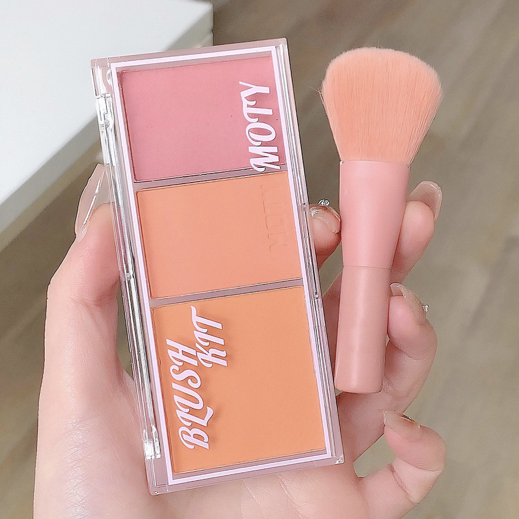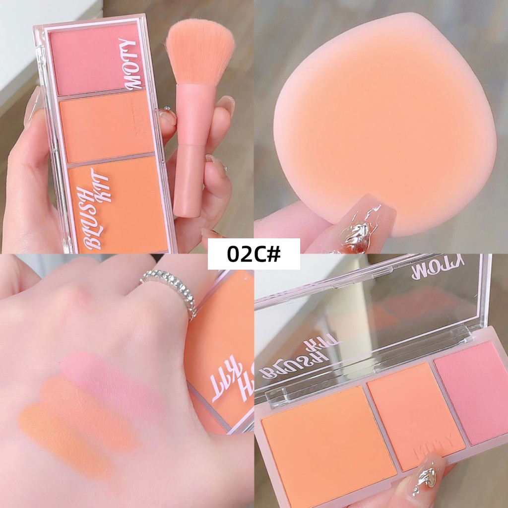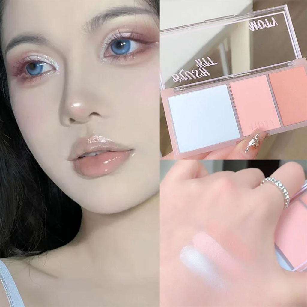 บลัชออนพาเลท 3 สี เพิ่มความกระจ่างใส ติดทนนาน ทาง่าย ปัดแก้ม แป้งปัดแก้ม คอนทัวร์สี คอนทัวร์ สีม่วง สีชมพู YUE