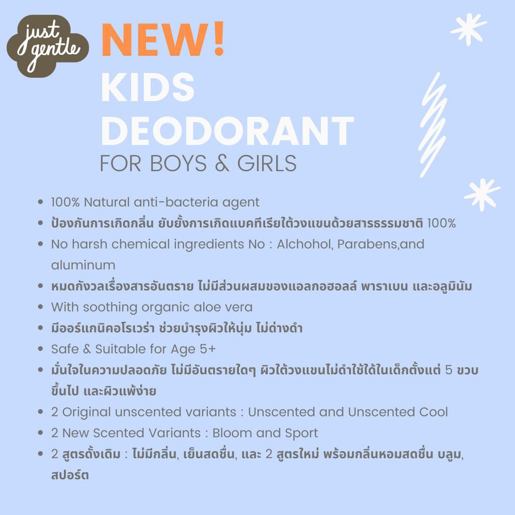 Just Gentle โรลออนป้องกันและระงับกลิ่นกาย กลิ่นบลูม Organic Kids Deodorant Floral Girly Scented - Bloom (60ml)