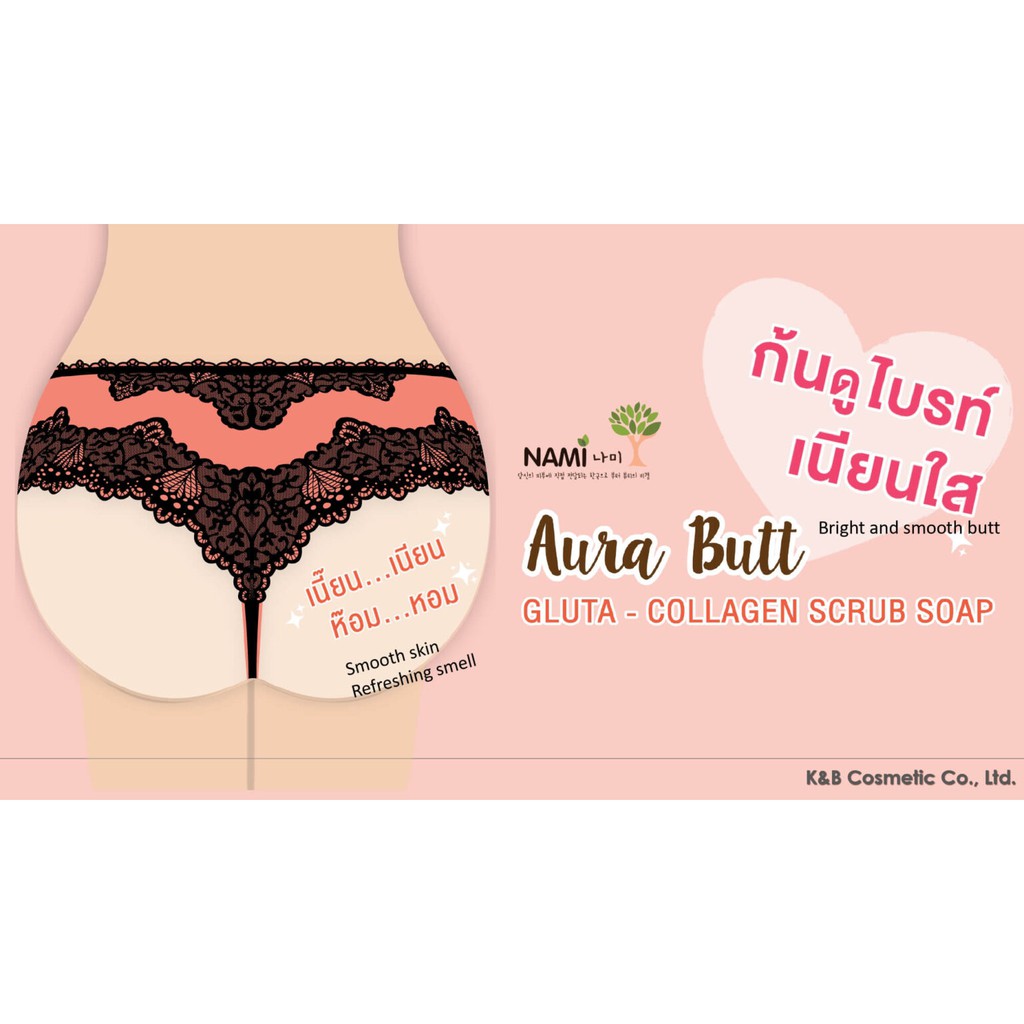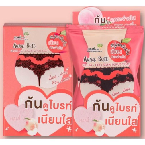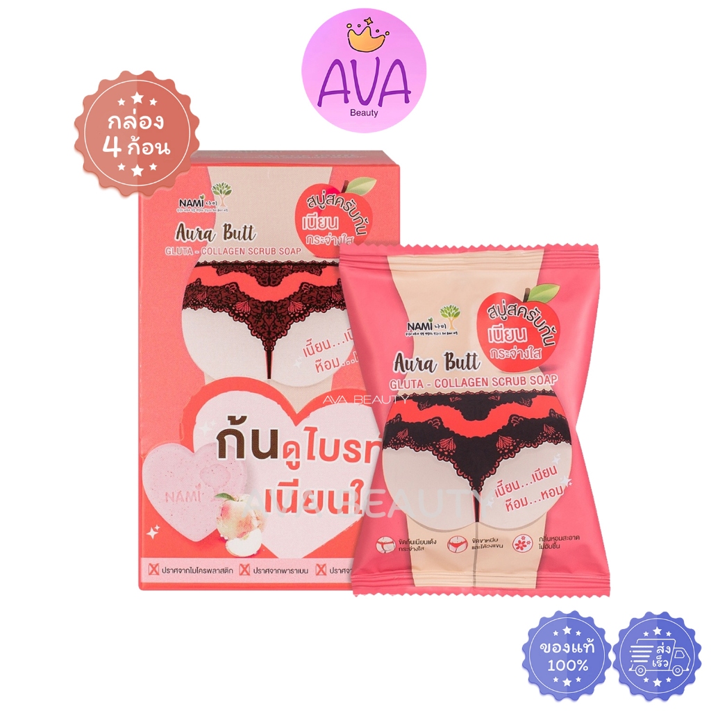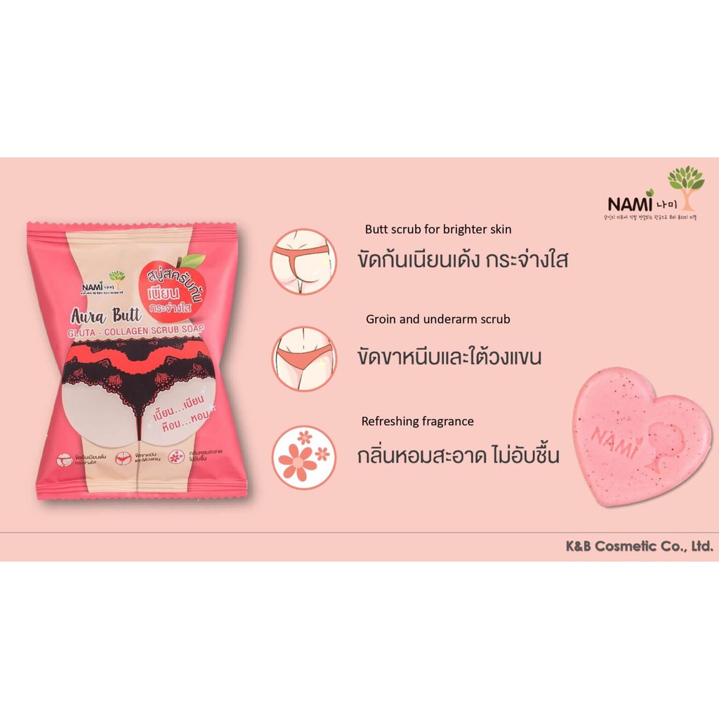 (4ก้อน/กล่อง) Nami aura butt gluta-collagen scrub soap นามิ สบู่สครับ (สบู่ก้น)[2750]