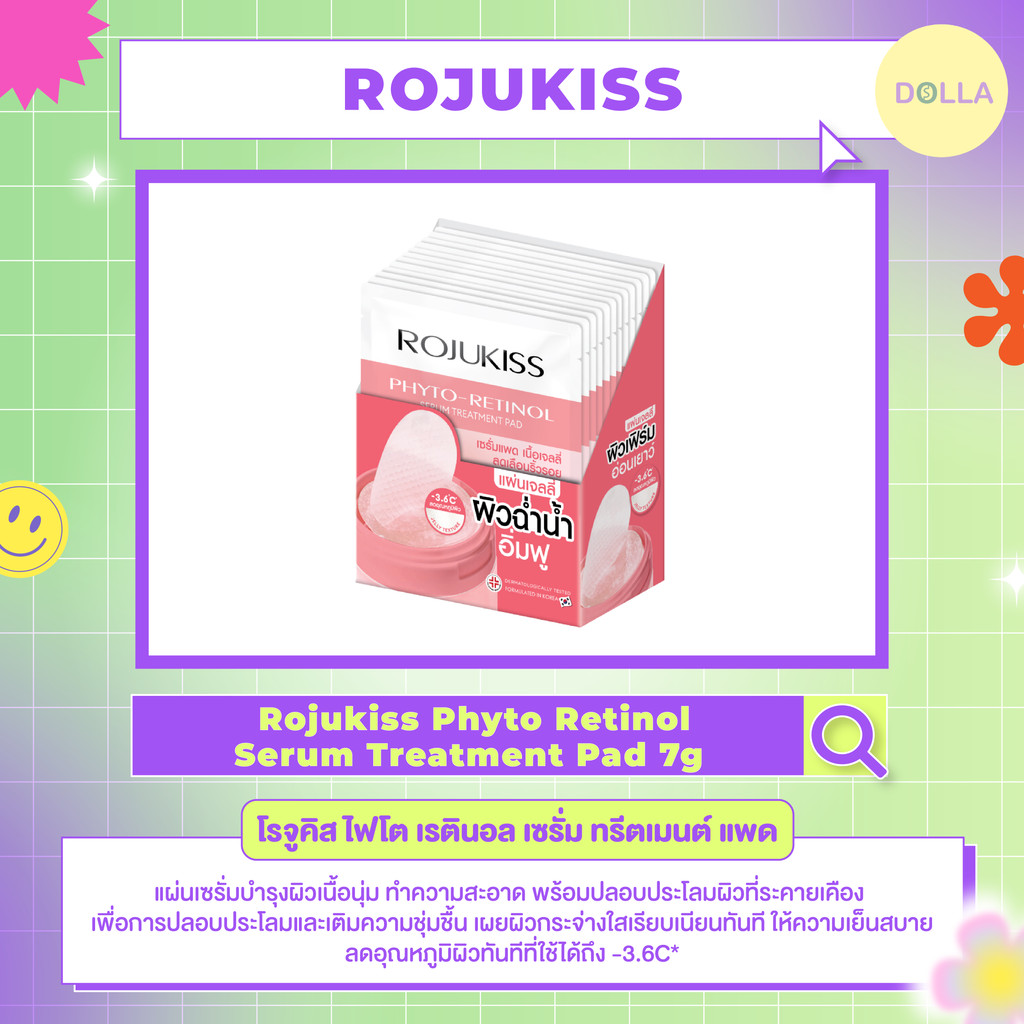 [Dolla][กล่องx12] โรจูคิส ไฟโต เรตินอล เซรั่ม ทรีตเมนต์ แพด Rojukiss Phyto Retinol Serum Treatment Pad 7g
