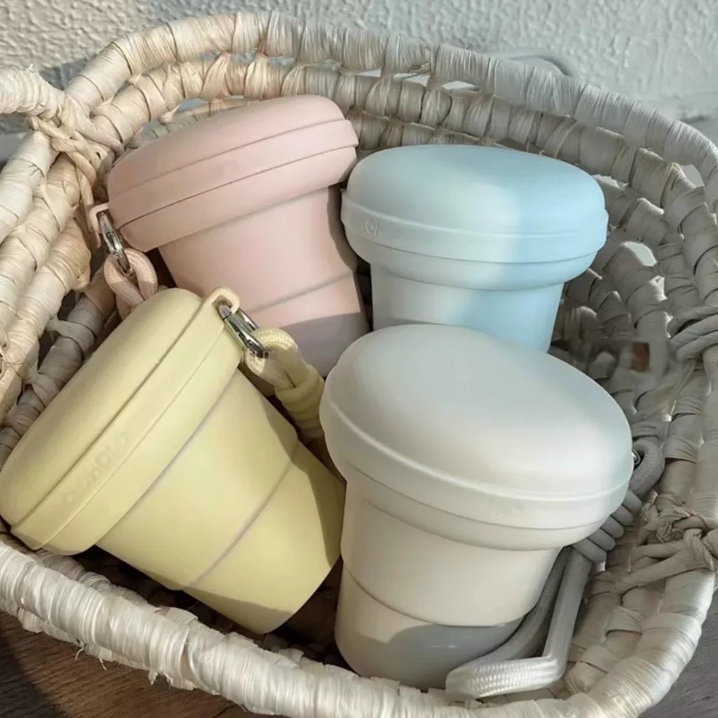 【LUCKY】HOLOHOLO ถ้วยน้ําพับได้แบบพกพากลางแจ้งเดินทางที่มาพร้อมกับถ้วยวัสดุซิลิโคนเป็นมิตรกับสิ่งแวดล้อมถ้วยกาแฟ 200มล