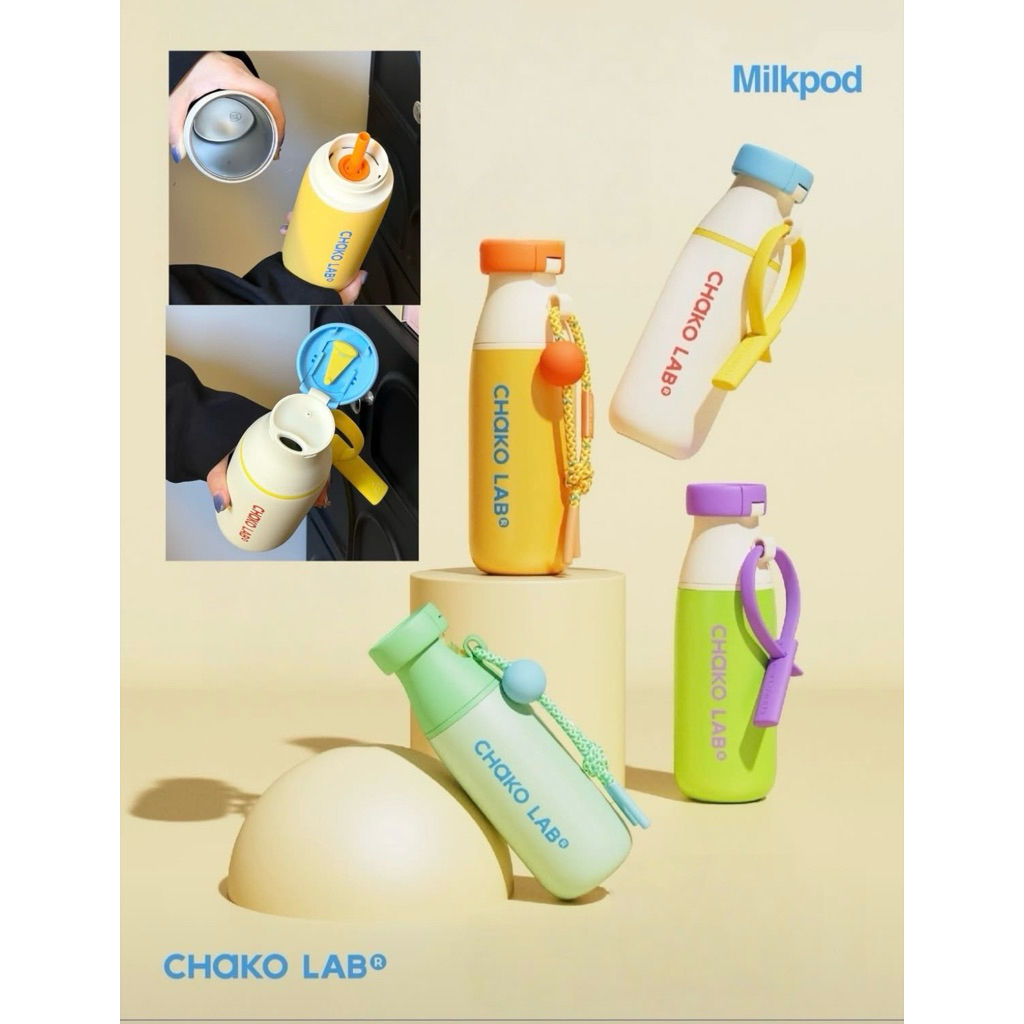 ( พร้อมส่งในไทย ) Chakolab รุ่นใหม่!! MilkPod 520ml ขวดเก็บความเย็น (มีหลอด) ตัวใหม่ ความจุ 520ml