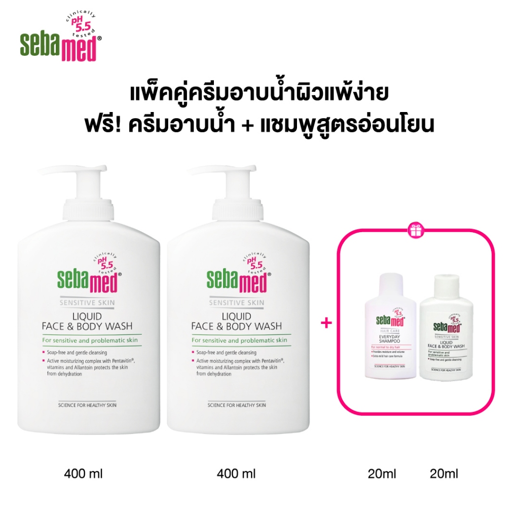 [เซ็ต 2+2] SEBAMED LIQUID FACE & BODY WASH 400ML X2 ชิ้น + ฟรี! ครีมอาบน้ำ 20ML และแชมพู 20ML