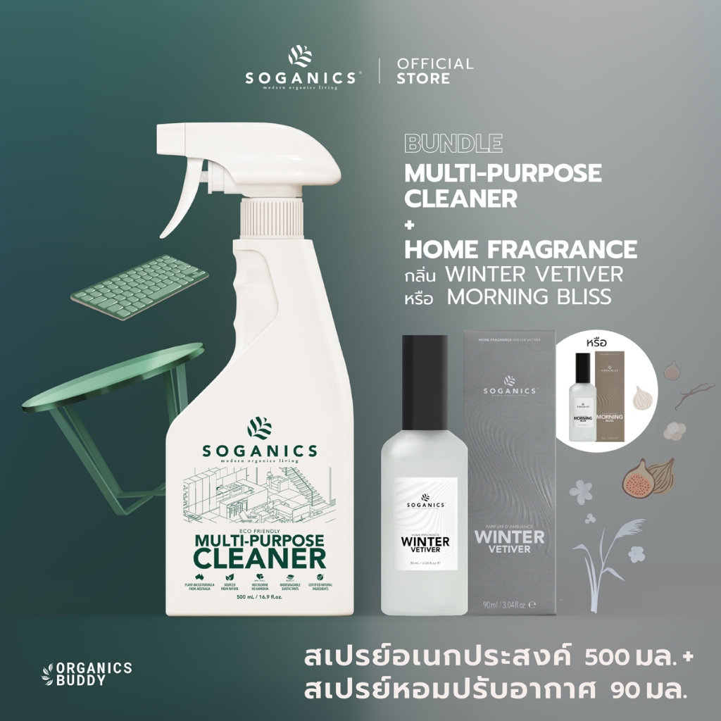 [แพคคู่] SOGANICS Multi-Purpose Cleaner + Home Fragrance สเปรย์ทำความสะอาดอเนกประสงค์ + สเปรย์หอมปรับอากาศ (500ml+90ml)