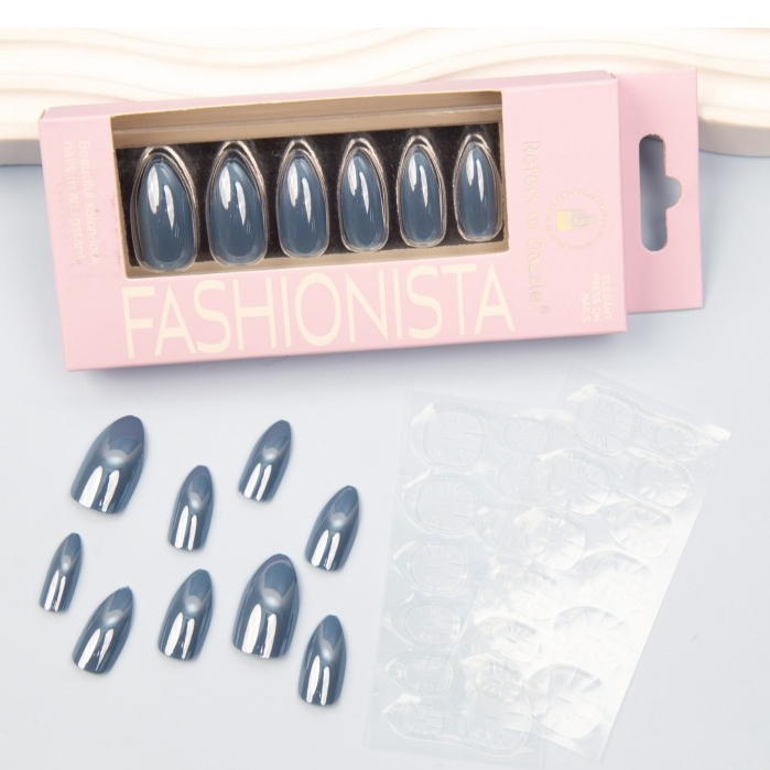 เล็บปลอมเกรดส่งออก 24 ชิ้น + สติกเกอร์ [รุ่นFASIONISTA] ลายเรียบ ใช้ได้นิ้วเล็ก-ใหญ่ โคนบางติดแล้วดูธรรมชาติ