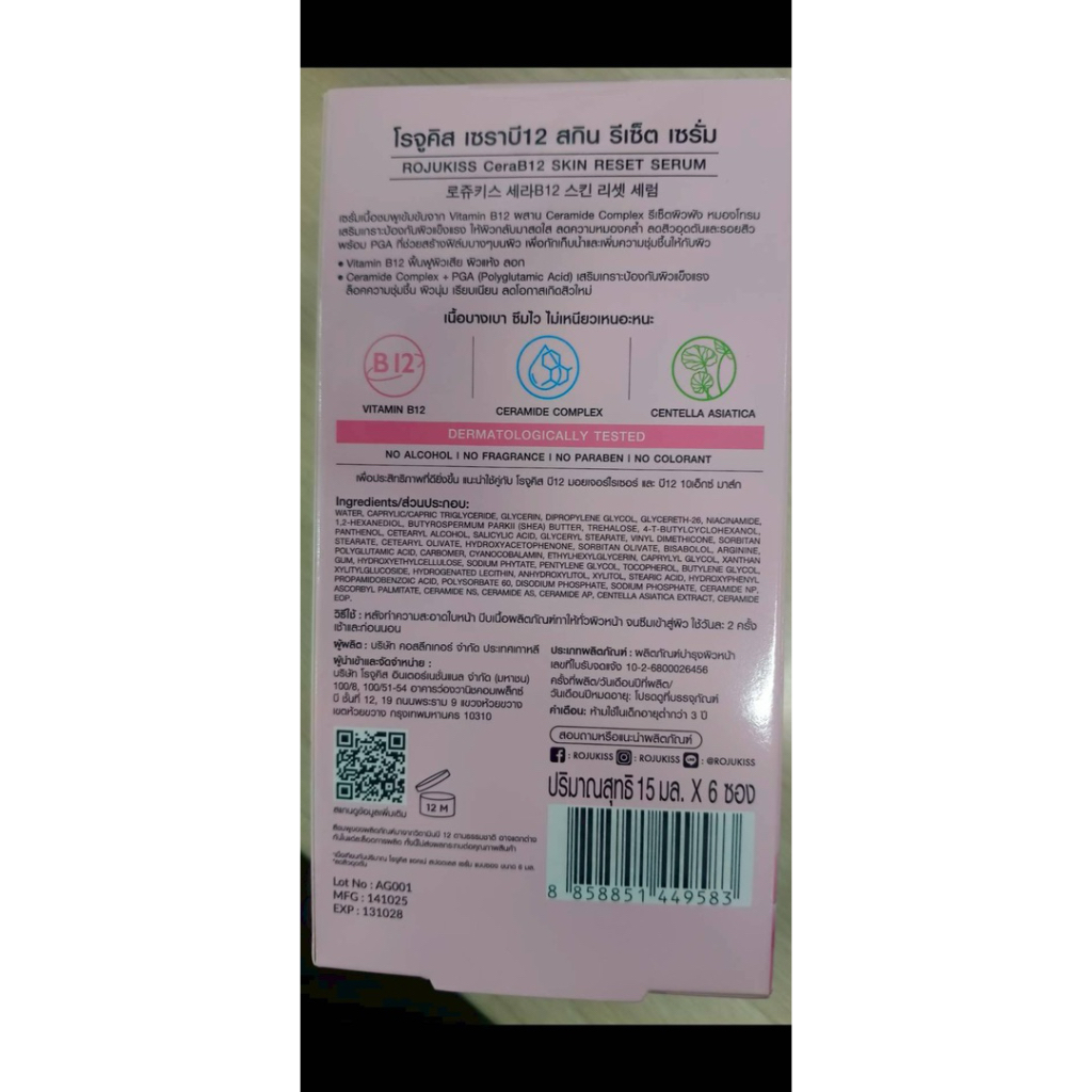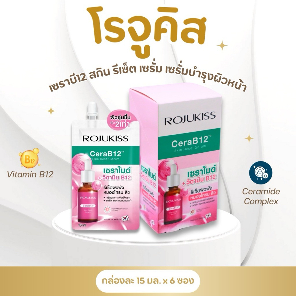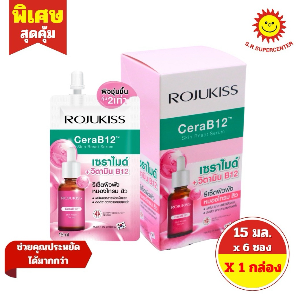 [ 1 กล่อง ] Rojukiss โรจูคิส เซราบี12 สกิน รีเซ็ต เซรั่ม เซรั่มบำรุงผิวหน้า ขนาด 15 มล. x 6 ซอง