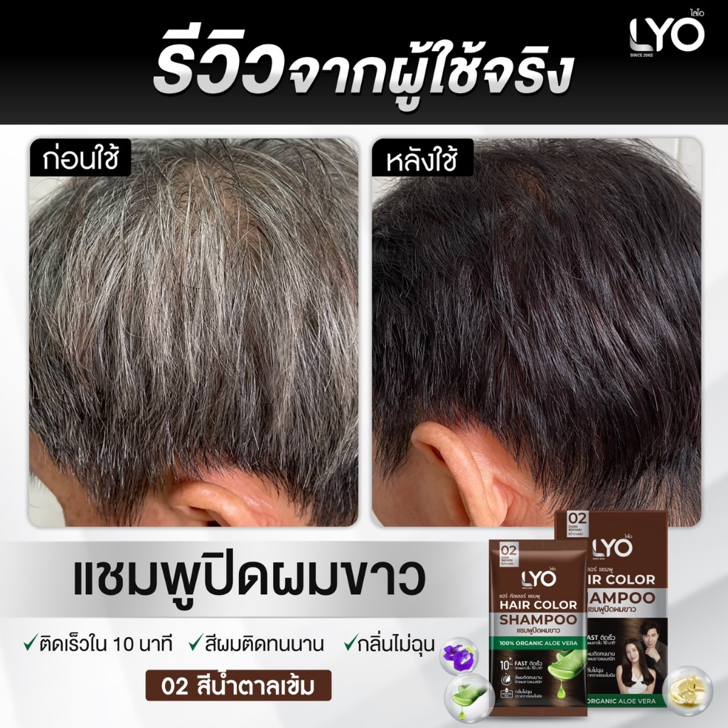 LYO แชมพูปิดผมขาว ปิดหงอก ออแกนิก ไลโอ หนุ่มกรรชัย ครีมปิดผมขาว แชมพูปิดหงอก ยาย้อมผมปิดผมขาว ผมไม่ร่วง ผมไม่เสีย