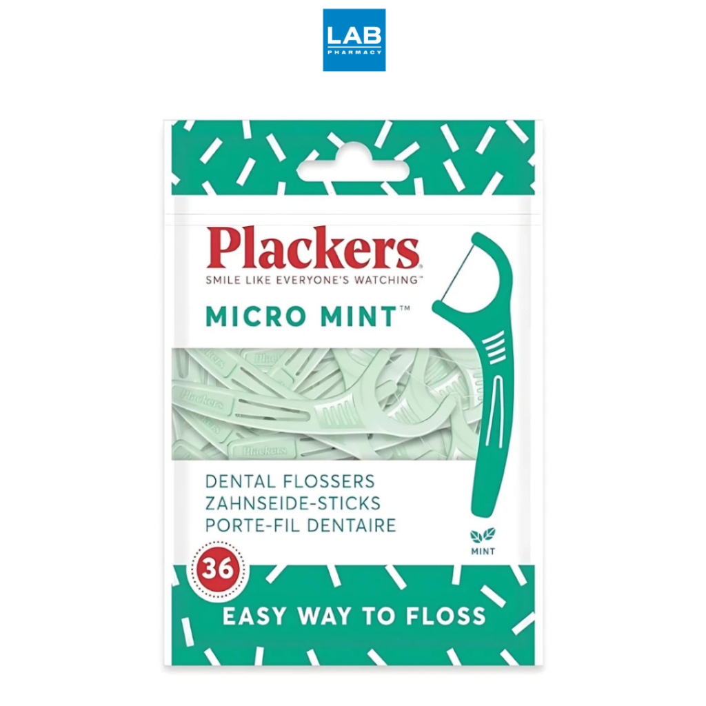 Plackers Flosser Micro Mint 36 pcs.พลัคเกอร์ ไหมขัดฟันแบบมีด้ามจับ กลิ่นมิ้นต์ 1 ห่อ บรรจุ 36 ชิ้น