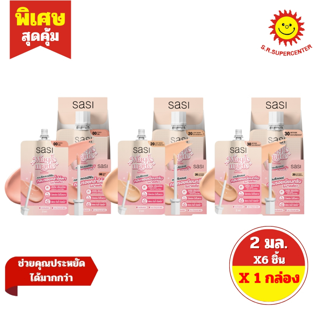 [ 1 กล่อง] Sasi ศศิ เมจิก แมทคอนซีลเลอร์ ขนาด 2 มล. ( 6ซอง) 3 สี