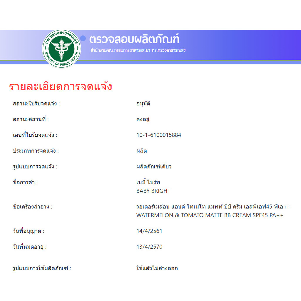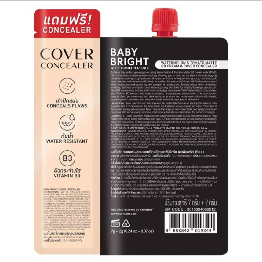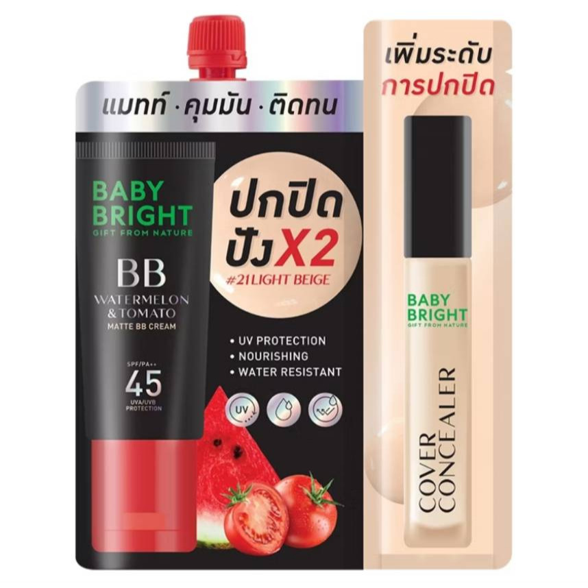 1 ซอง บีบีครีมแตงโมมะเขือเทศ เบบี้ไบร์ท Baby Bright Watermelon & Tomato Matte BB Cream Spf45 7g+2g แบบแถมคอลซีลเลอร์ #21