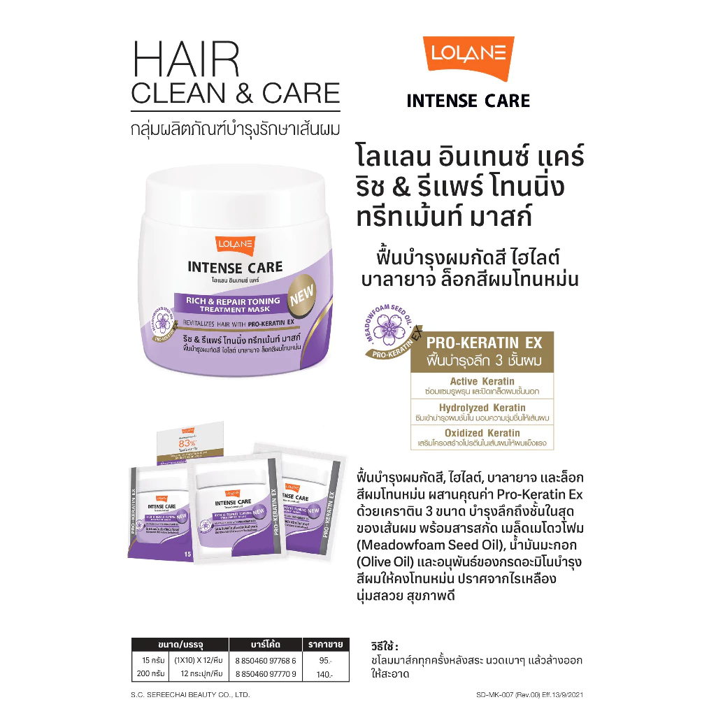 LOLANE INTENSE CARE KERATIN REPAIR MASK ทรีทเม้นท์ โลแลน เคราติน 200 กรัม มีให้เลือก 7 สูตร ทรีทเม้นท์ ฟื้นบำรุงผมเสีย