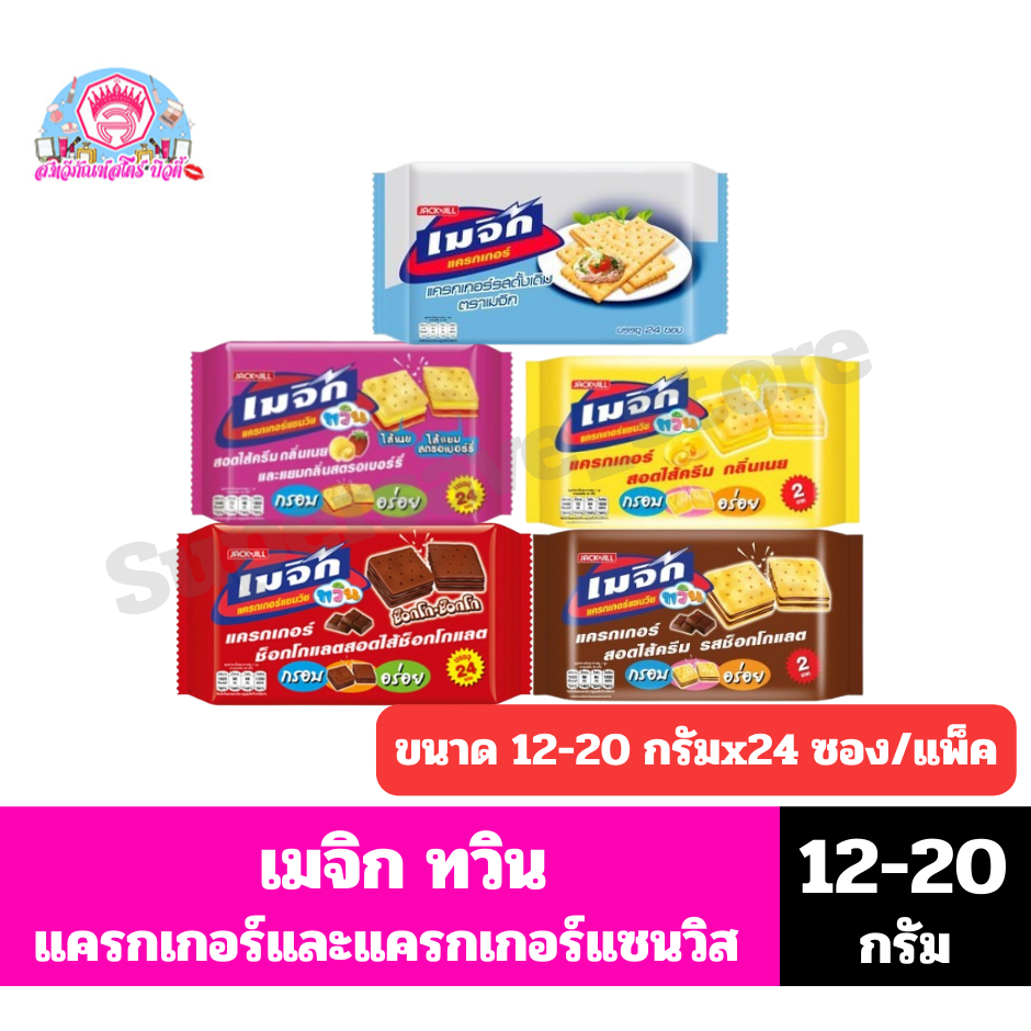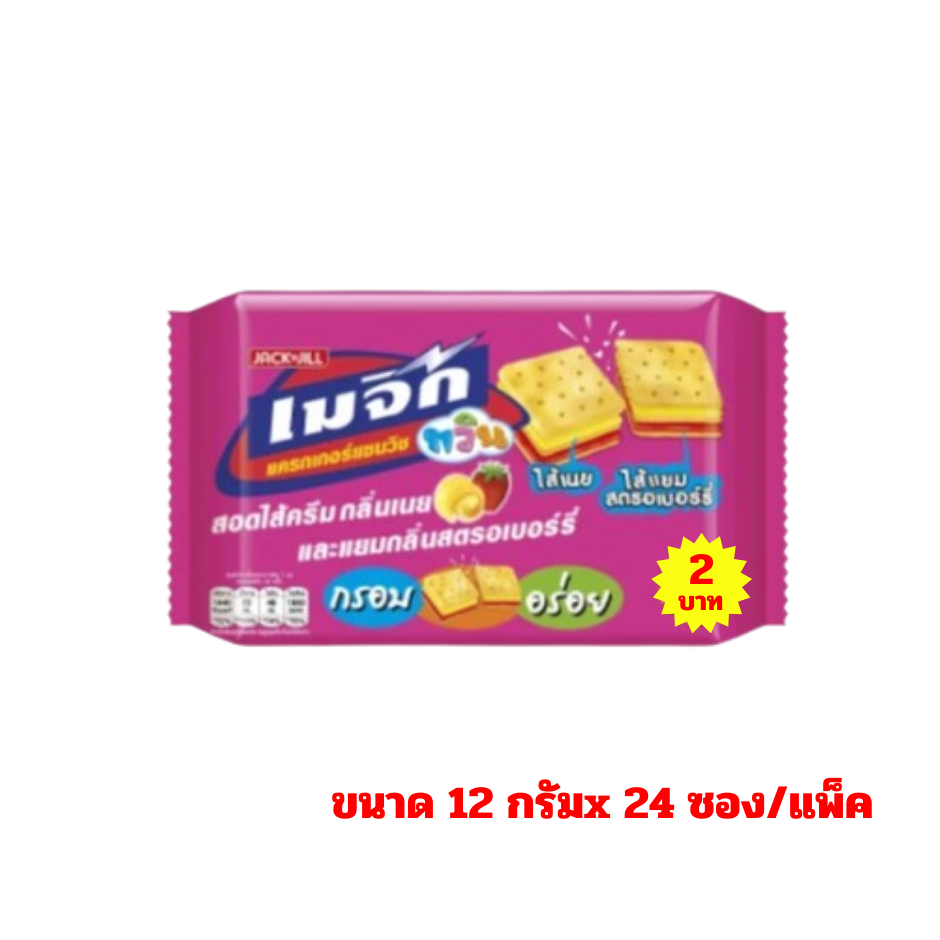 เมจิก ทวิน ขนมแครกเกอร์และแครกเกอร์แซนวิช ขนาด 12-20 กรัมx24 ซอง(รุ่น 2 บาท)*//แพ็ค 24 ซอง*//*