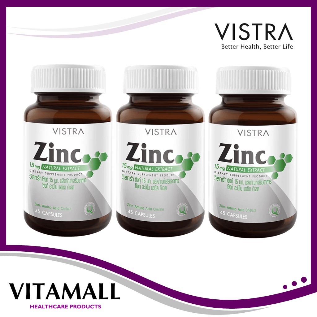 ((ซื้อVistra3ขวด)) VISTRA Zinc 15mg วิสทร้า ซิงค์