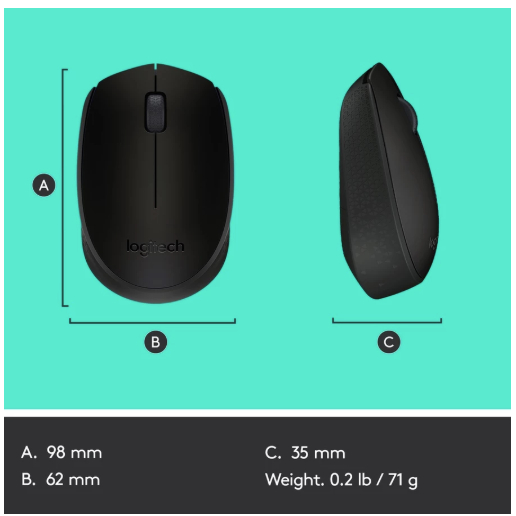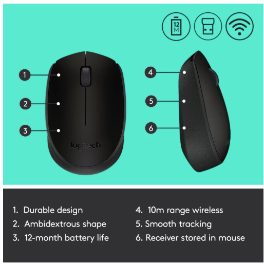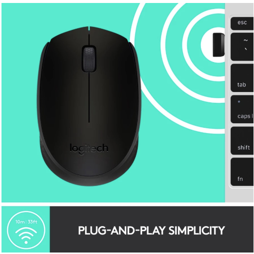 Logitech B170 Wireless Mouse, 2.4 GHz with USB Nano Receiver - Black (เมาส์ไร้สาย usb)